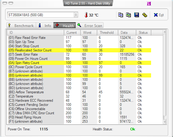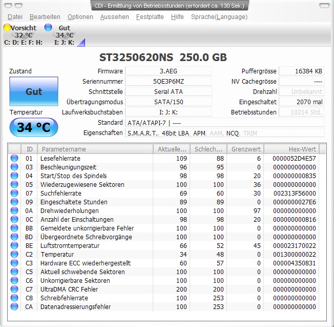 gelesen und geschrieben werden können, ergo ist hier ein Fehler auf der HDD vorhanden. Dieser Wert ist auch ein Anzeichen des Ablebens der HDD, welches aber mitunter keines sein