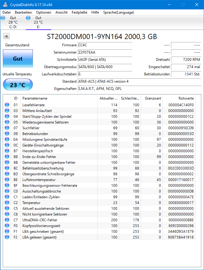 Im Rahmen eines Ebay-Kleinanzeigen-Verkauf ist mir erstmals aufgefallen das CrystalDisklnfo (CDI) keine Schreib und Lesevorgänge anzeugt.