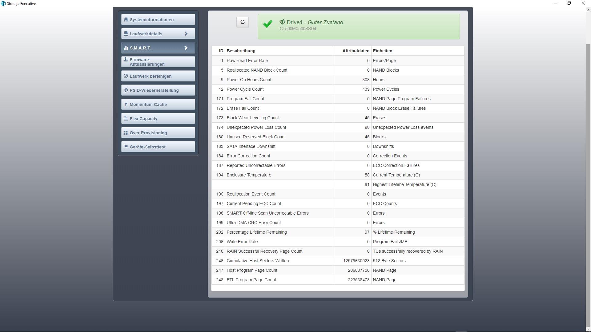 Mir fällt schon seit einiger Zeit auf, dass die Lebensdauer laut Crystalinfo fast jeden Monat um 1% sinkt.
