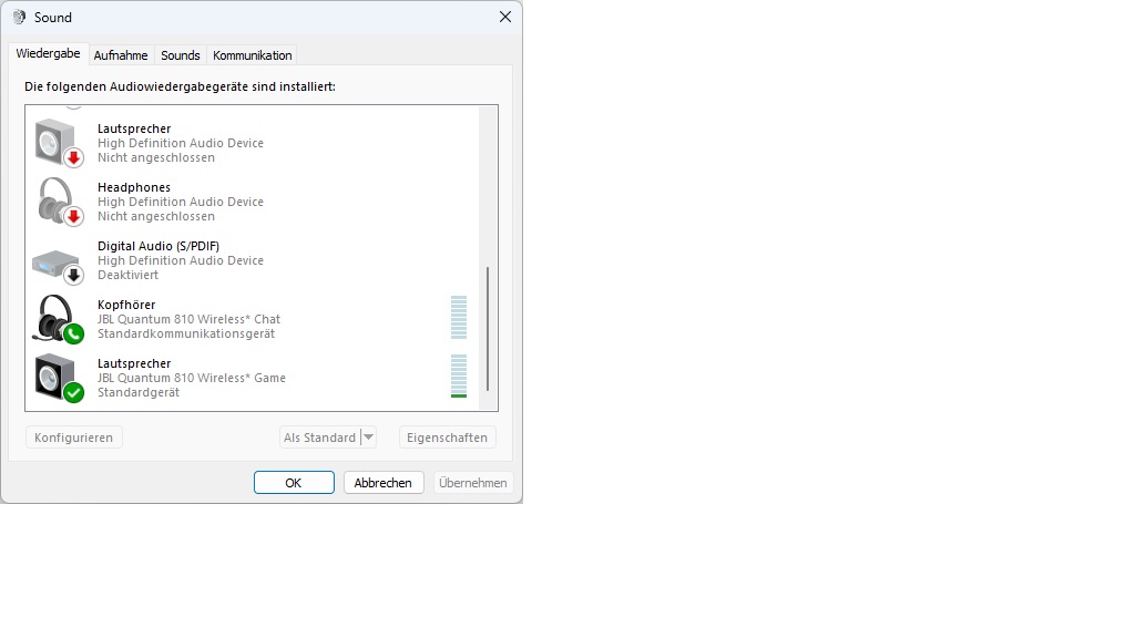 discord funktioniert als beispiel und auch ist das headset richtig eingestellt auf Lautsprecher (JBL 810 Wireless *Game)