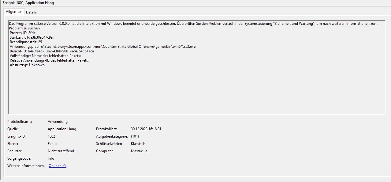 Hallo liebes Forum, CS2 hängt sich zufällig während des Spielens auf.