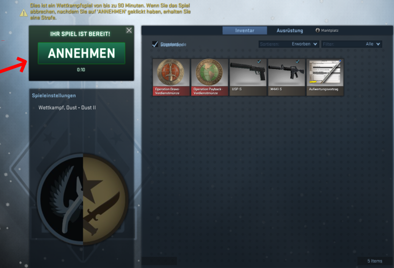 immer wenn ich in CSGO über das Matchmaking-System ein Match suche, kann ich es nicht annehmen und es steht dann da: ''Es wurde ein Spiel gefunden, aber IceZzapfen hat es nicht angenommen.