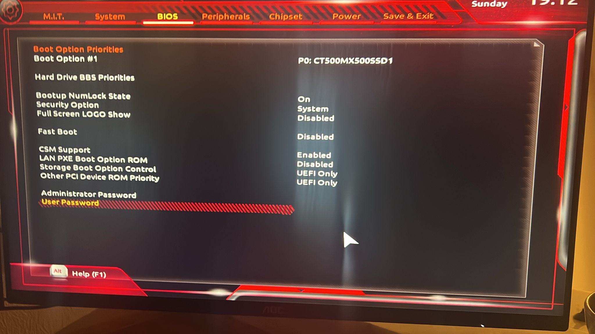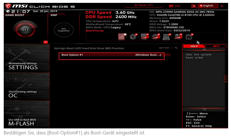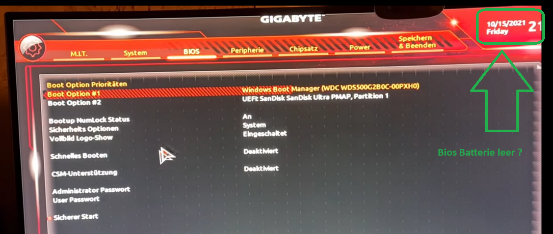 Secure Boot ist bei ihm aus.