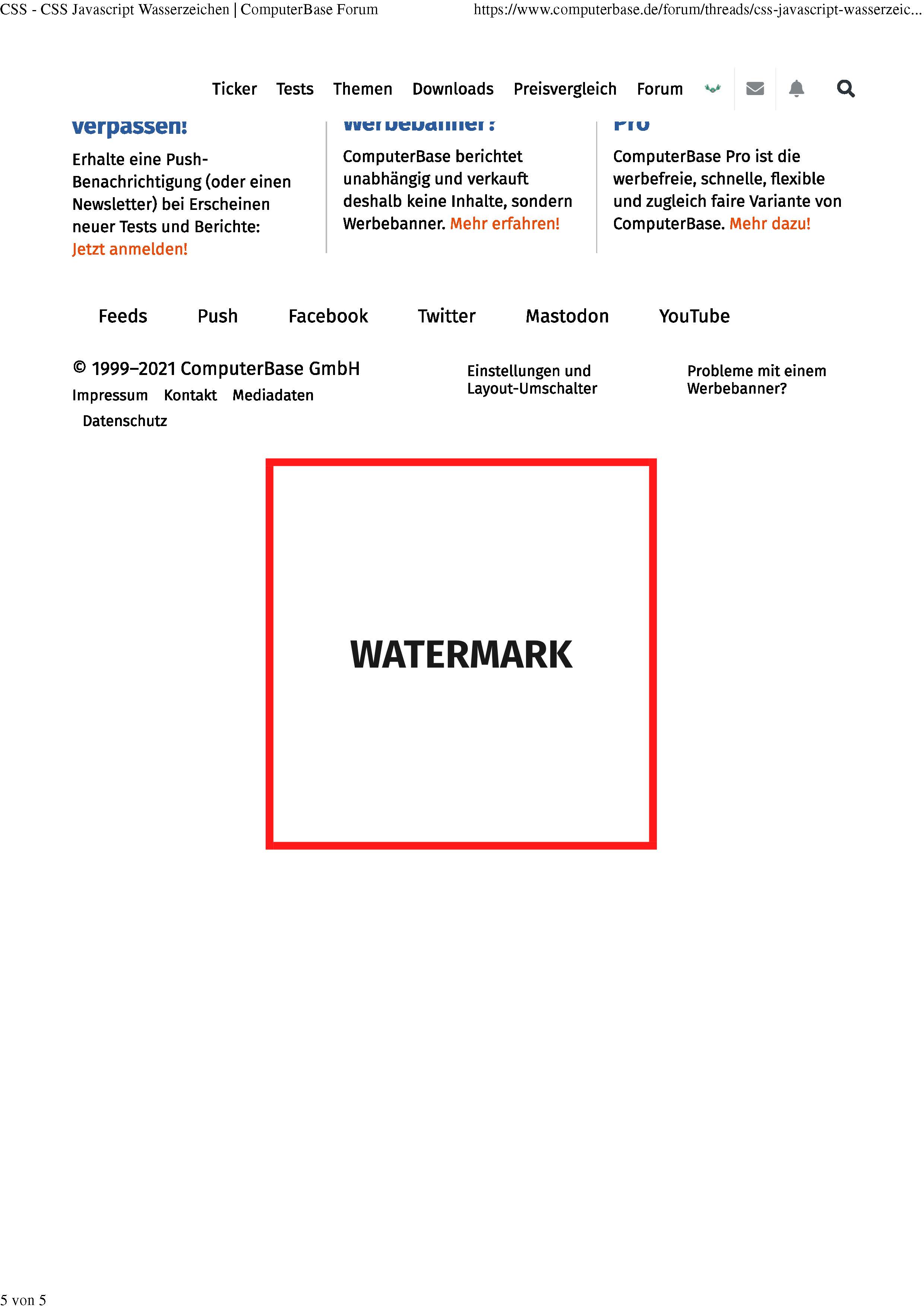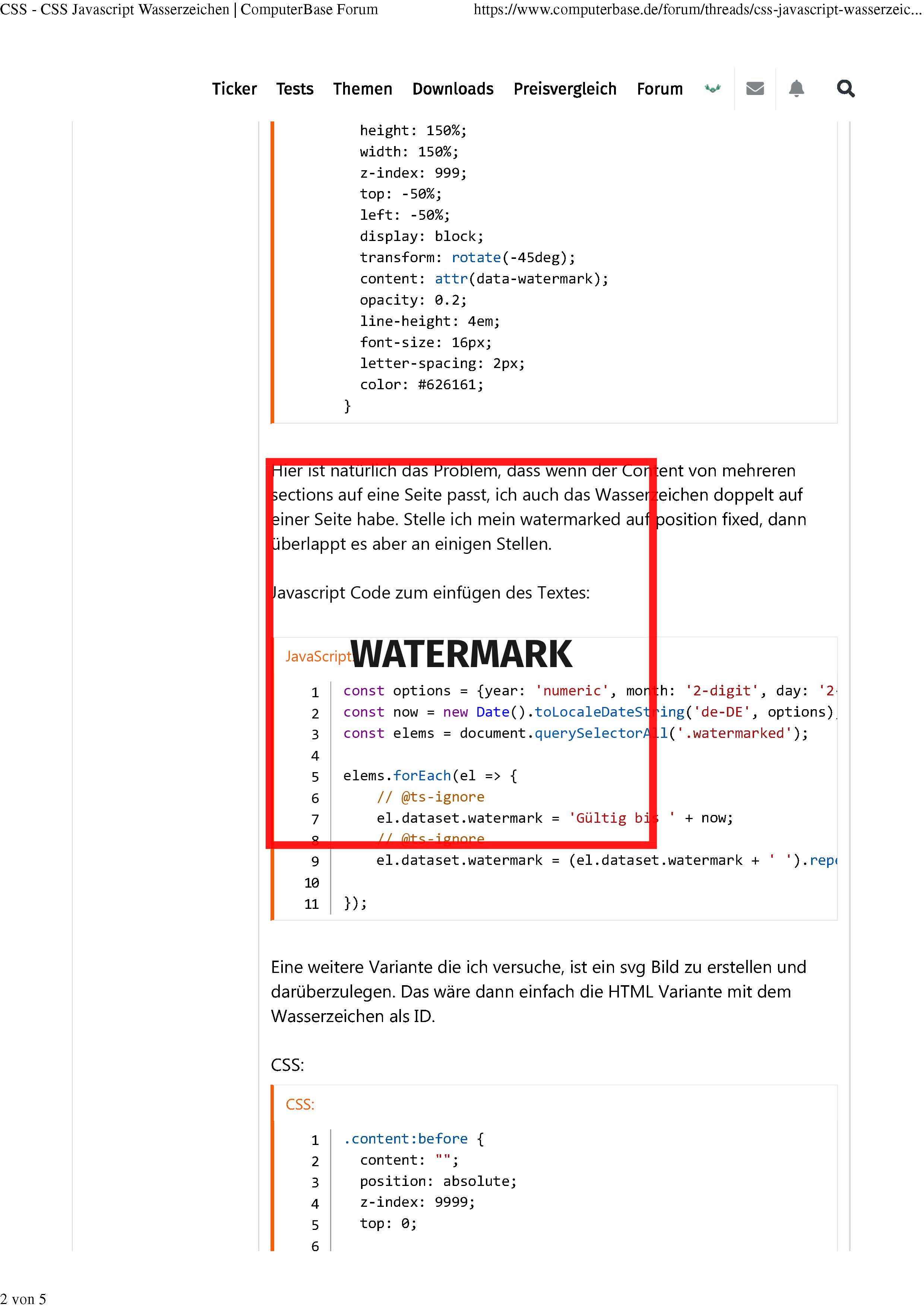Eine weitere Variante die ich versuche, ist ein svg Bild zu erstellen und darüberzulegen. Das wäre dann einfach die HTML Variante mit dem Wasserzeichen als ID.