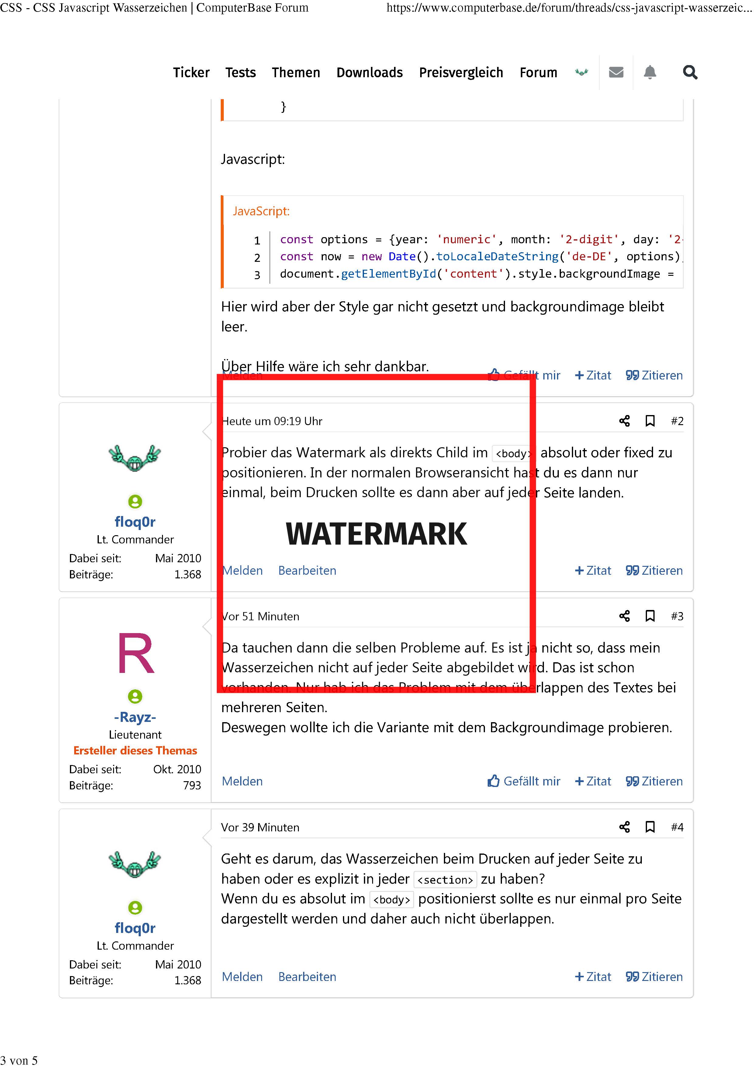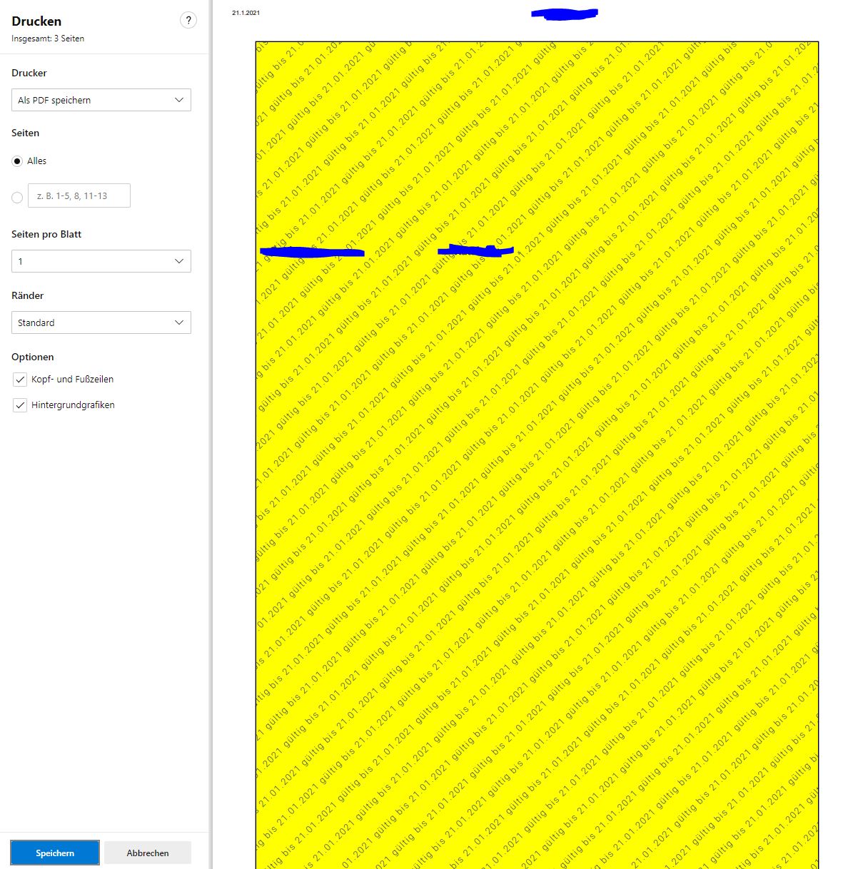 Ziel ist es, dass Text + aktuellem Datum auf jeder neuen Seite als Wasserzeichen gedruckt wird. Dazu habe ich zwei Varianten getestet.