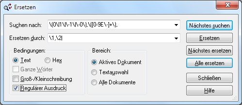 Mit ersetzen habe ich auch schon versucht (0, ersetzen mit 0.). Bei 0 geht es, aber sowie Werte mit 1, erscheinen, geht es nicht.