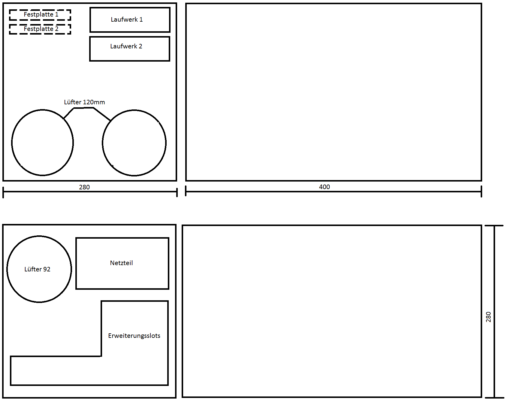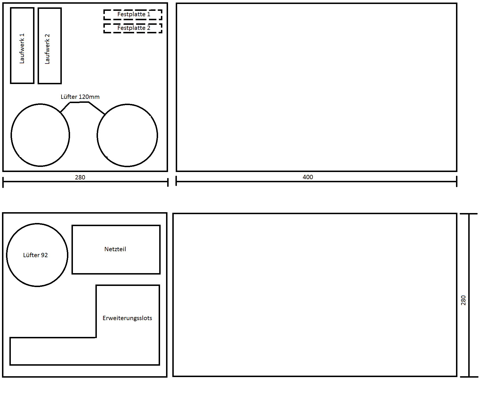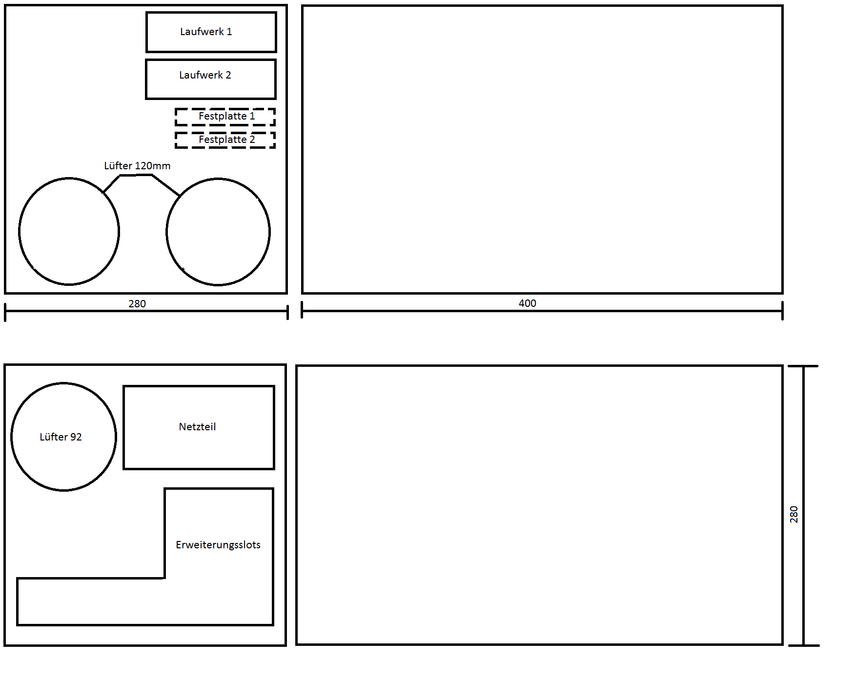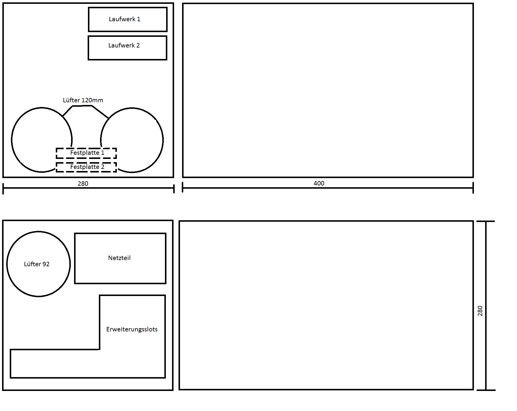 Bei Skizze 5 könnte ich mir auch vorstellen die 2 Laufwerke nach Links zu versetzen was haltet ihr davon?