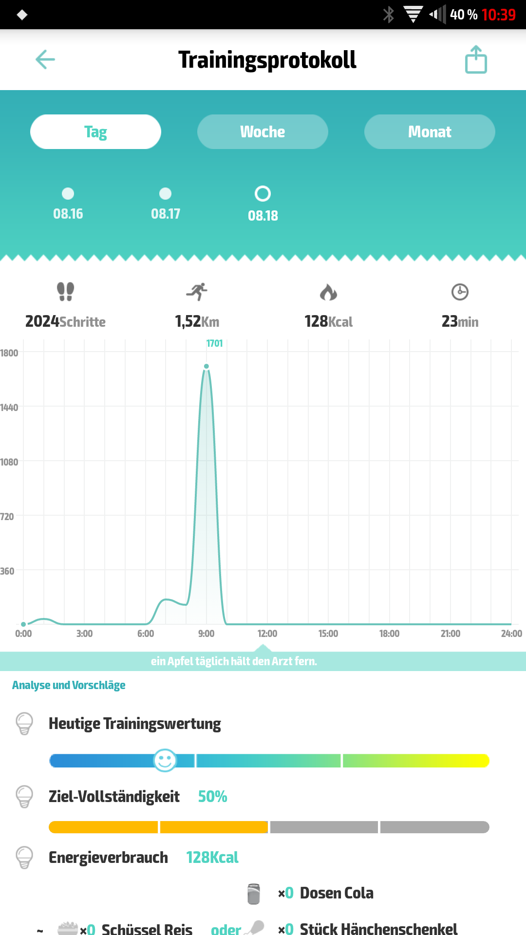 Und mit einem letzten mal Tippen sieht man die verbrauchten Kalorien.