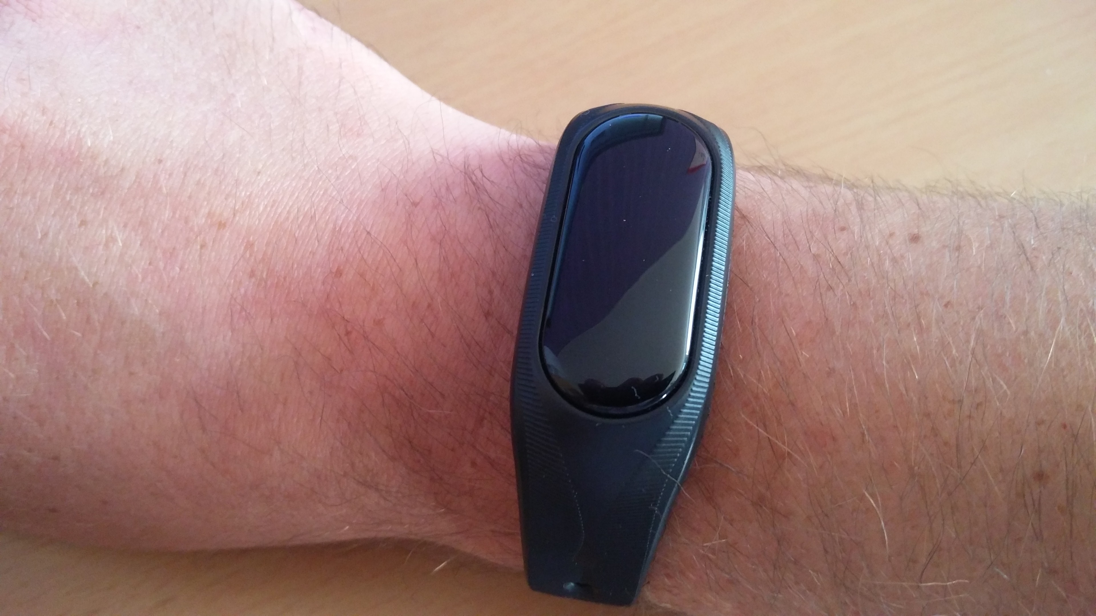Das Armband des Smartbands ist aus TPU gefertigt und wiederstandsfähig, aber nicht hartnäckig. Das heißt, das es mich beim tragen nicht stört. Es frisst sich nicht in meine Haut, wie manch andere Armbänder von Uhren. Bisher geht es meiner Haut auch wunderbar, keine Reizungen, Rötungen oder sonstige Schwierigkeiten.