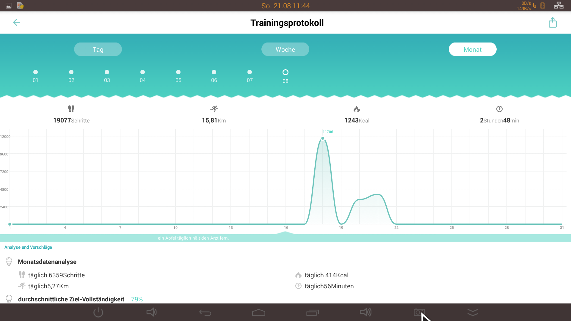 Bei einem dritten Tipper mit dem Finger, werden einem die zurückgelegten Schritte angezeigt.