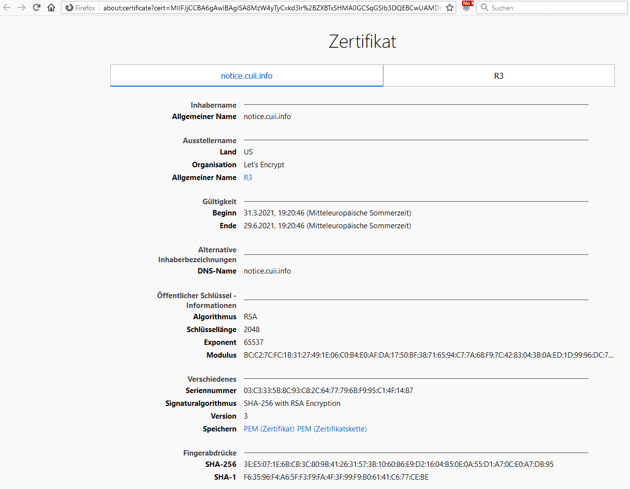 Alles in Allem ist SSL leider nicht das Allheilmittel als das es immer suggeriert wird. Aber es ist aktuell das beste was wir haben, auch wenn es Schwaechen hat. Da die CUII aber ja "zu den Guten" gehoert, haette es mich nicht gewundert wenn sie mit den Browseranbietern einen Deal gemacht haetten das ihnen das Vertrauen nicht entzogen wird.