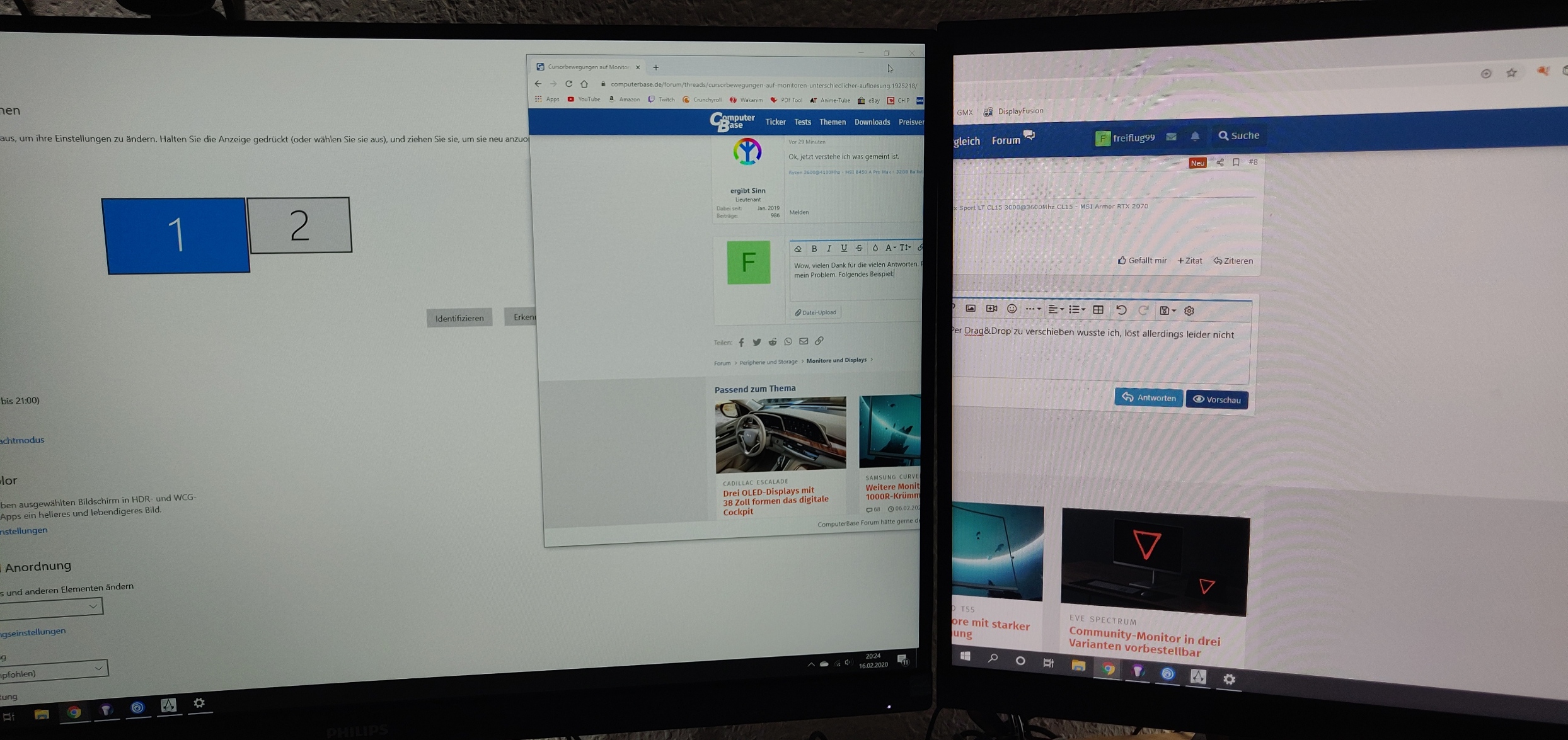 ich habe mir vor kurzem einen zweiten Monitor zugelegt (QHD), der Alte läuft auf FHD, beide haben 27 Zoll. Skalierung, etc. klappt mehr oder weniger wunderbar, das Einzige was mich stört ist, dass bei Cursorbewegungen zwischen den beiden Bildschirmen sich der Cursor durch die unterschiedliche Auflösung "verschiebt", d. h. wenn ich aus der oberen Ecke des alten Bildschirms auf den Neuen wechsele, taucht der Cursor weiter in der Mitte auf und nicht in der oberen Ecke. Warum das so ist, ist recht simpel zu verstehen, nur eine Lösung fällt mir nicht ein.