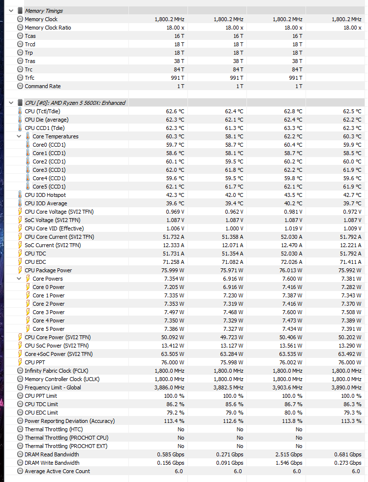A) Sind die bisher betrachteten Testszenarien bzgl. den Single CORE Temperaturen zu synthetisch um eventuelle Vorteile zu erkennen? Falls ja, was wäre eine geeignete Alternativmethode? Ich habe heute noch mal einige Logs geprüft, es scheint mir auf jeden Fall eher nicht so zu sein als ob durch das UV in Prime ein Spannungsvorteil an der CPU ankommt.