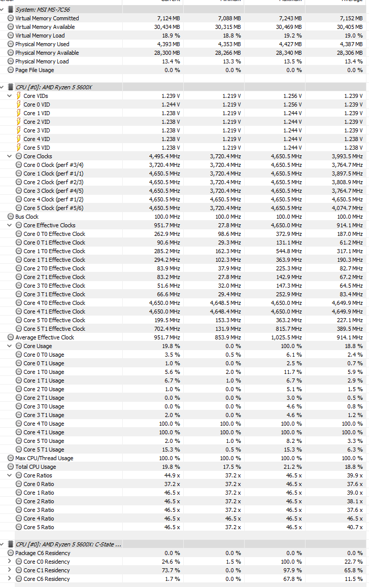 Wenn ich dann im Curve Optimizer den Offset von -15 einstelle und die Spannungen erneut mit der gleichen Methode prüfe dann liegt an den jeweiligen COREs auch in der Tat weniger Spannung an. Im Mittel um die -0,08V, das wären dann pro Step ca. -0,005V was ja im Erwartungsbereich ist. Soweit so gut...