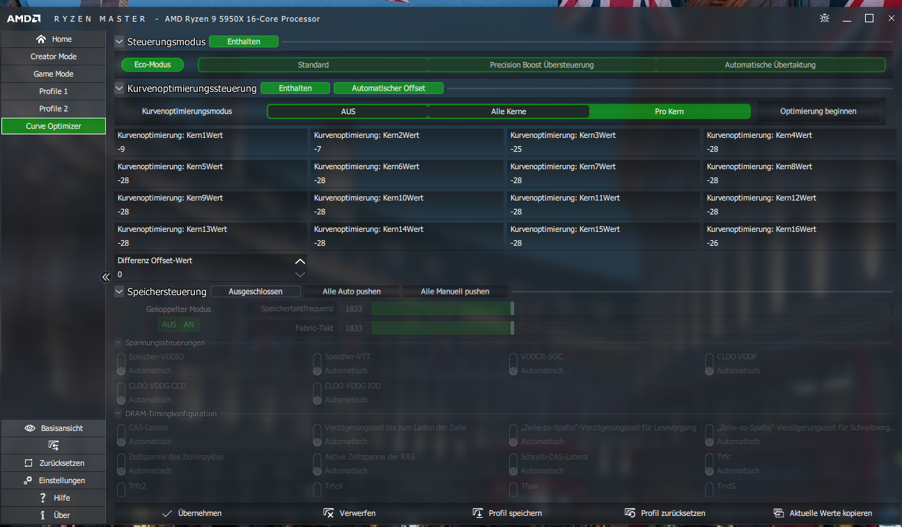 Intension war ja gewesen, den 5950X so effizient wie möglich zu betreiben.