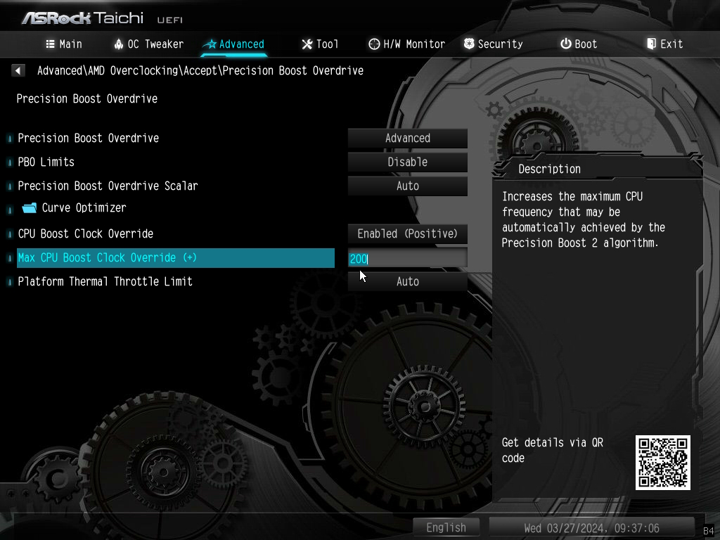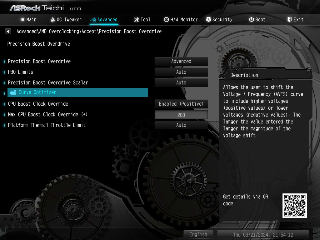 Zum Schluss kann man den „ CPU Boost Clock Override“ einstellen, bei mir auf +100 MHz.