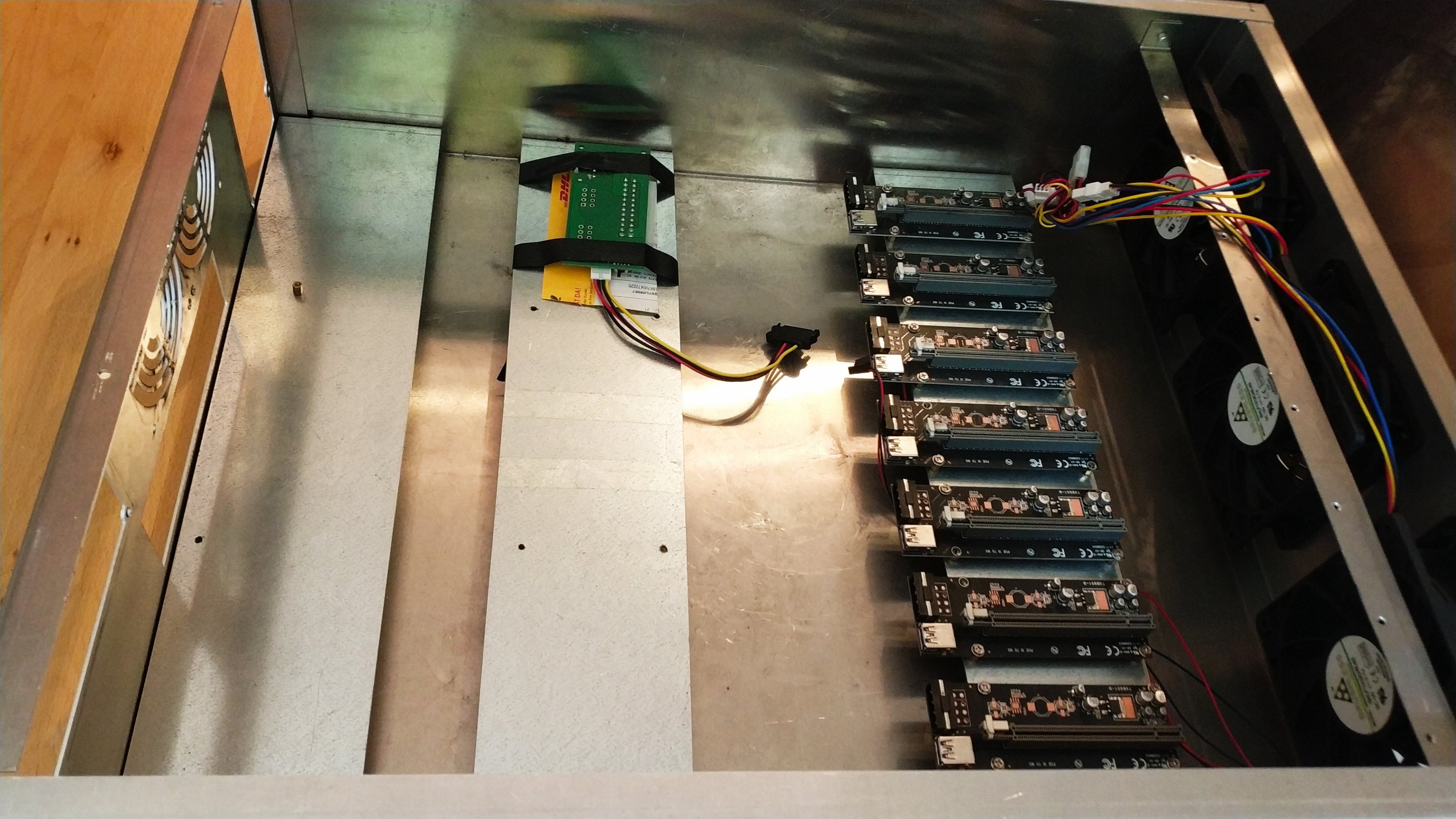 Ich hänge mal ein paar Fotos vom aktuellen Haben Zustand an. dachte daran in der Breite auf 1-2 fans zu reduzieren und halt in der länge ebenfalls. das case ist aus aluminium und hat inlays aus stahl wo board und riser befestigt wurden AFAIK