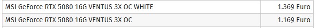 Der Preis der preiswertesten schwarzen lag auch bei 1369EUR mehr oder weniger, da die für 1169€ es wohl nicht in den shop geschafft hat. Oder sie war nach 10sek ausverkauft die eine Karte, gesehen hab ich um 15:00 Uhr keine auf der MSI Seite - andere Karten waren ca. 10min lang verfügbar mit Bestand von 4-16 Stück.