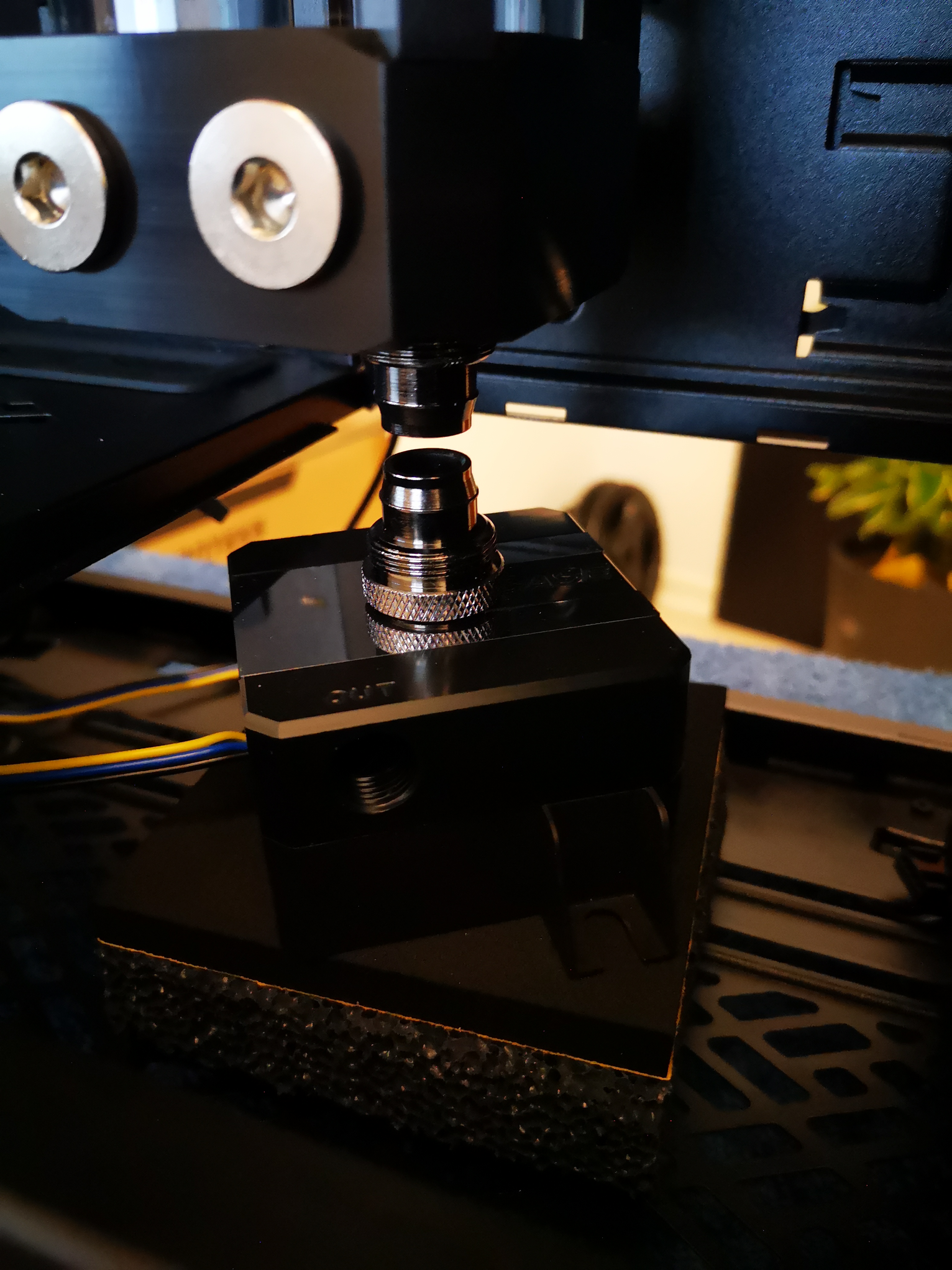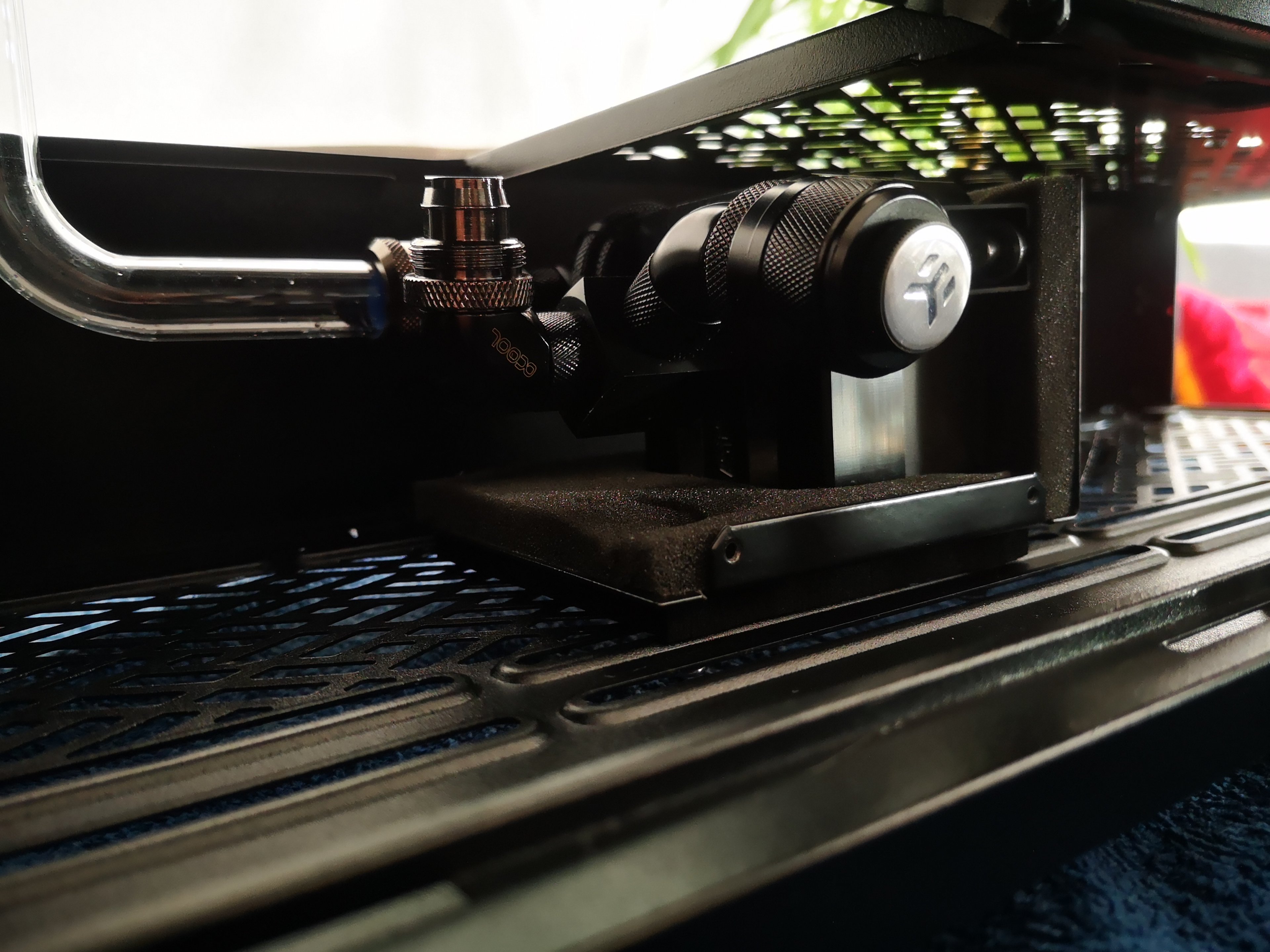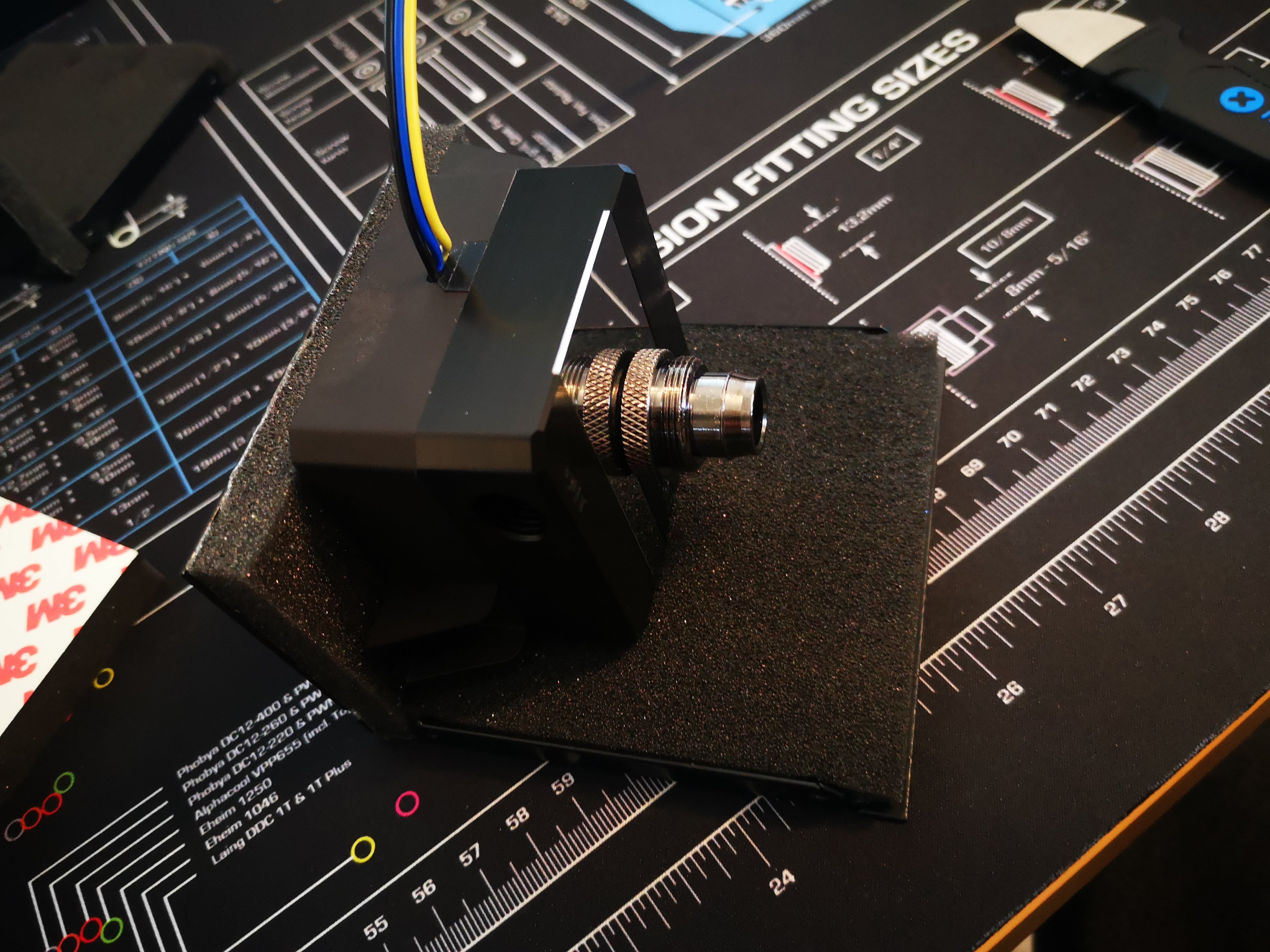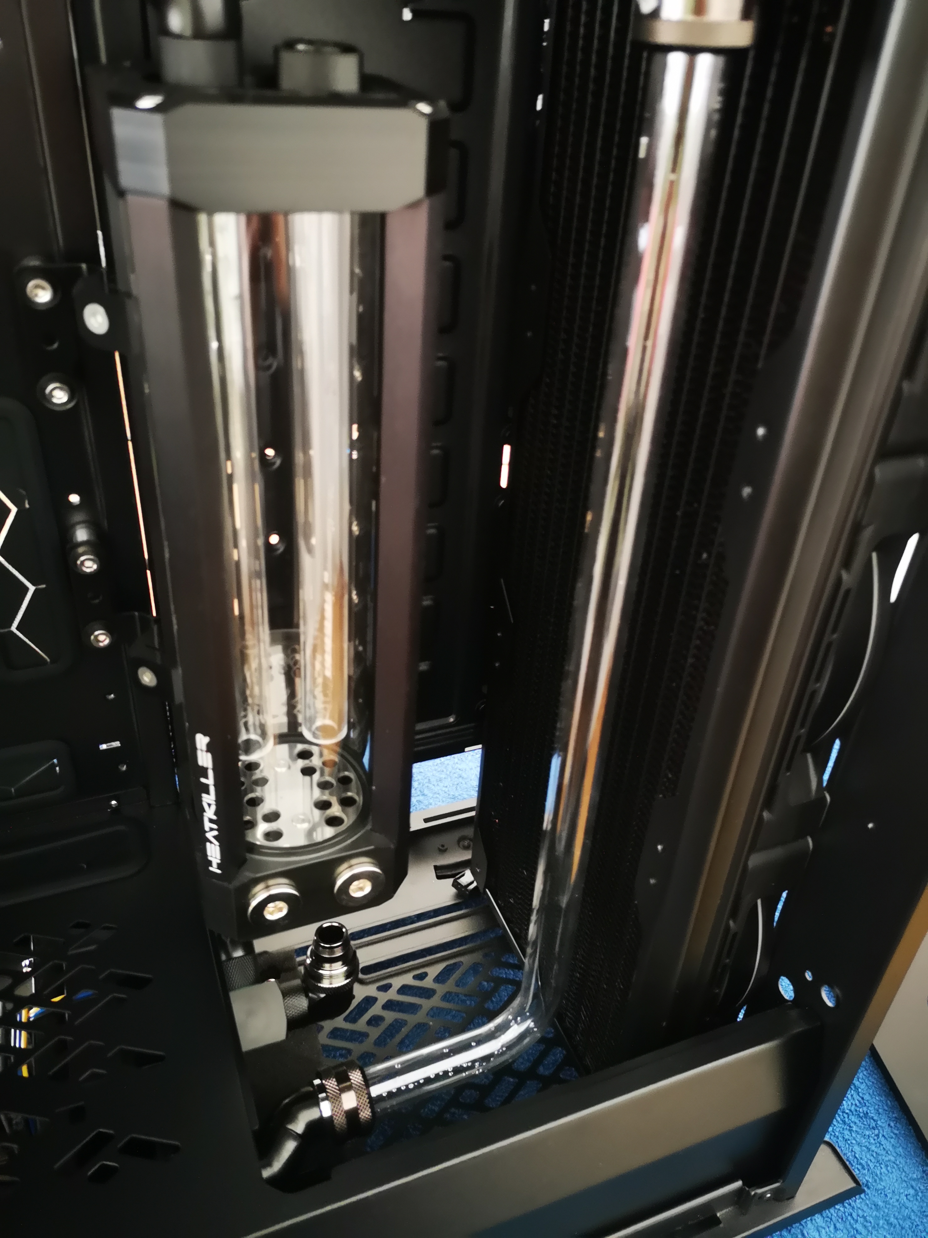 Ich würde gern den Flow Sensor (warum muss der so gewaltig sein?) gerne woanders platzieren, die einzige Stelle die dafür im Frage kommt ist der Ausgang am Front Radi. Keine Ahnung ob es danach noch hübsch aussieht, evtl. muss ich die Tube soweit kürzen (Flowsensor + Snake Adapter) dass es mir nicht mehr gefällt... sollte es soweit kommen werde ich den Flow Sensor komplett ausbauen.