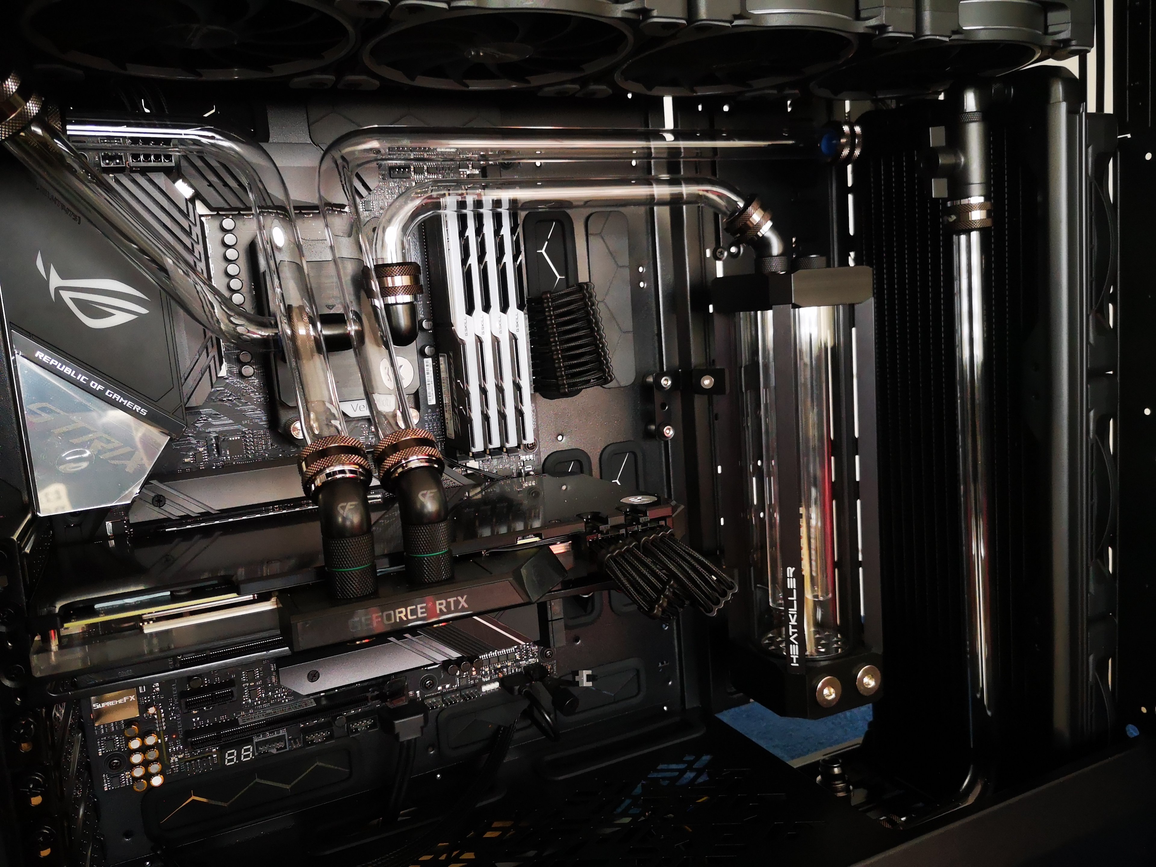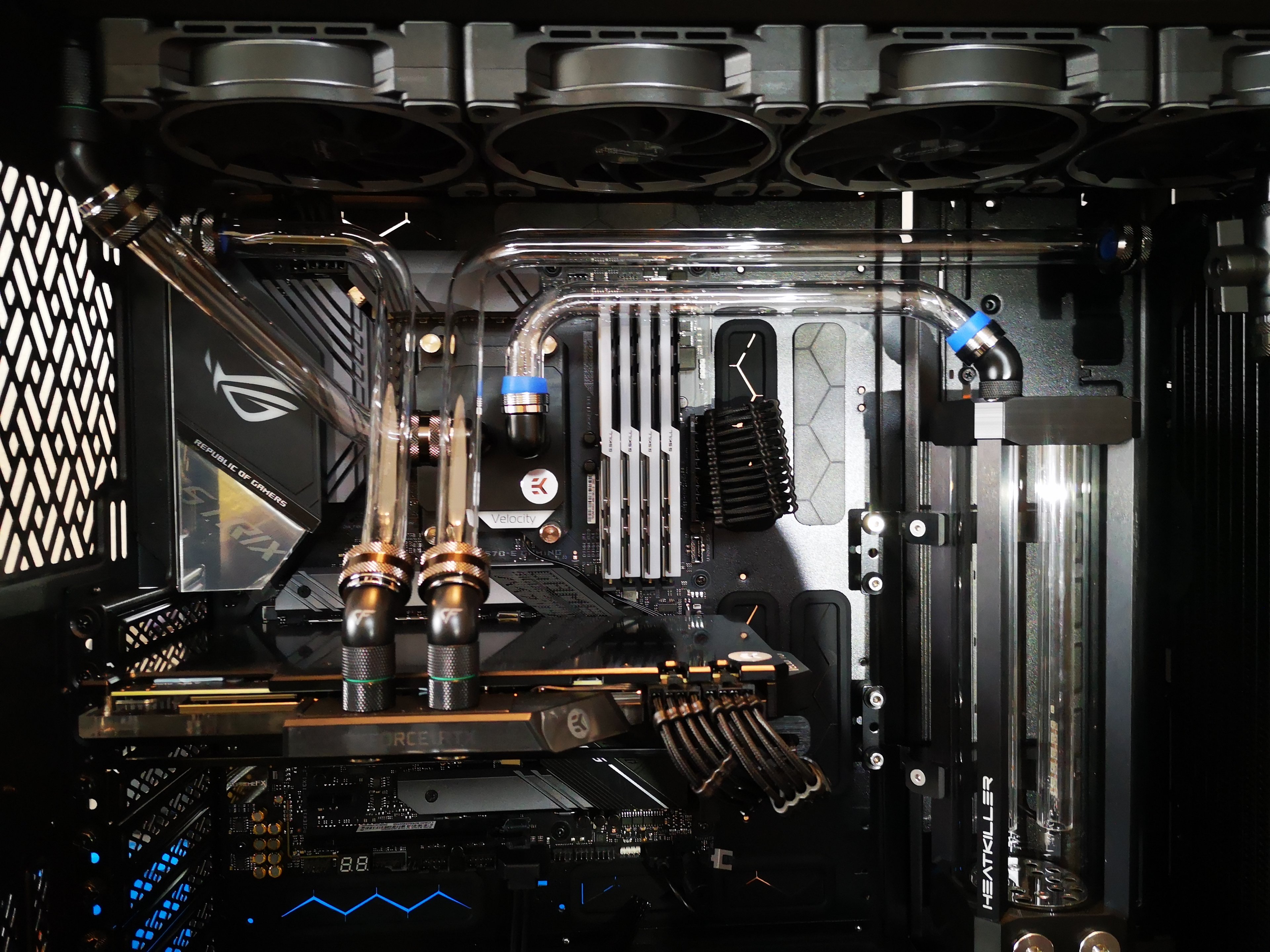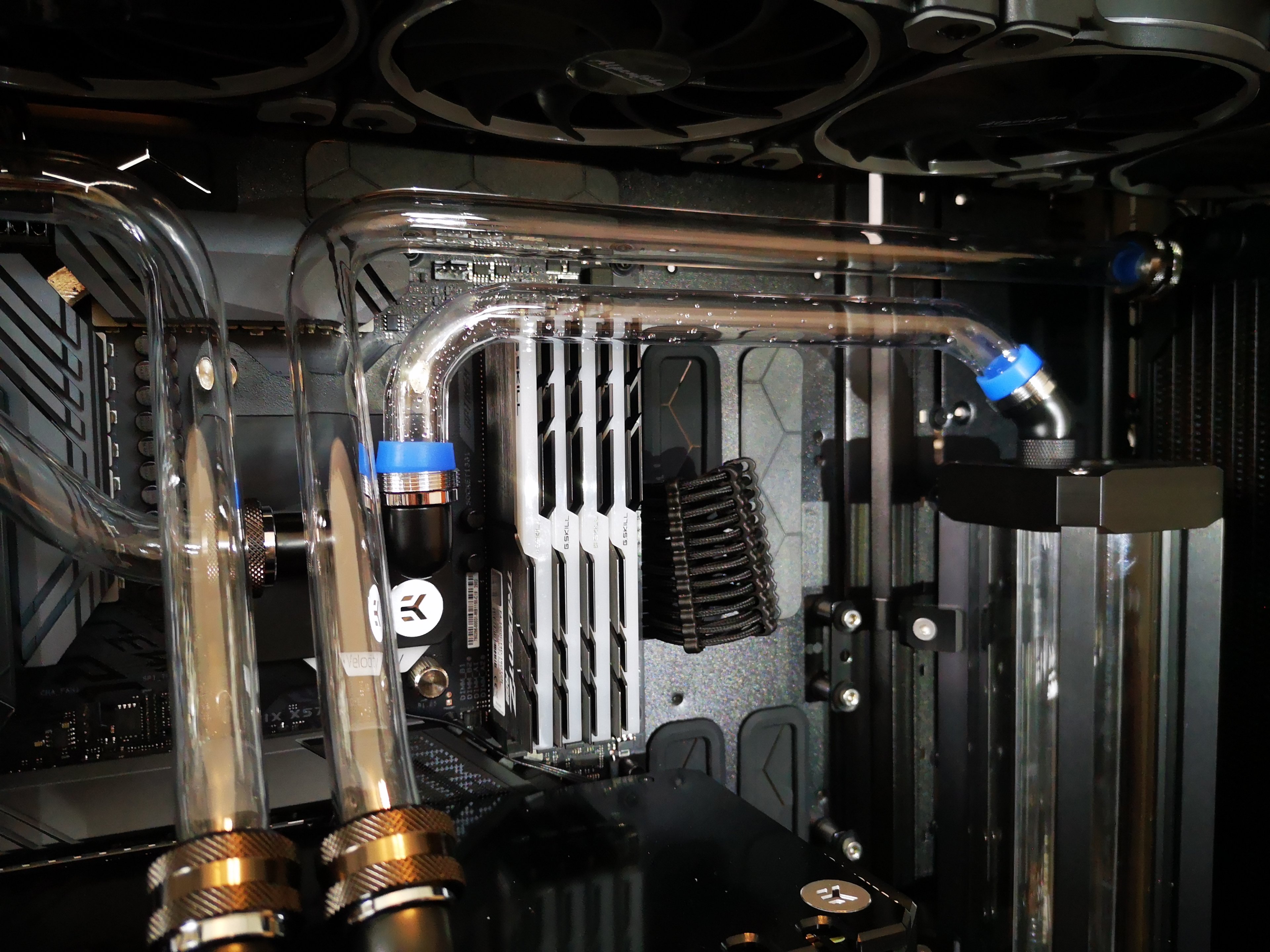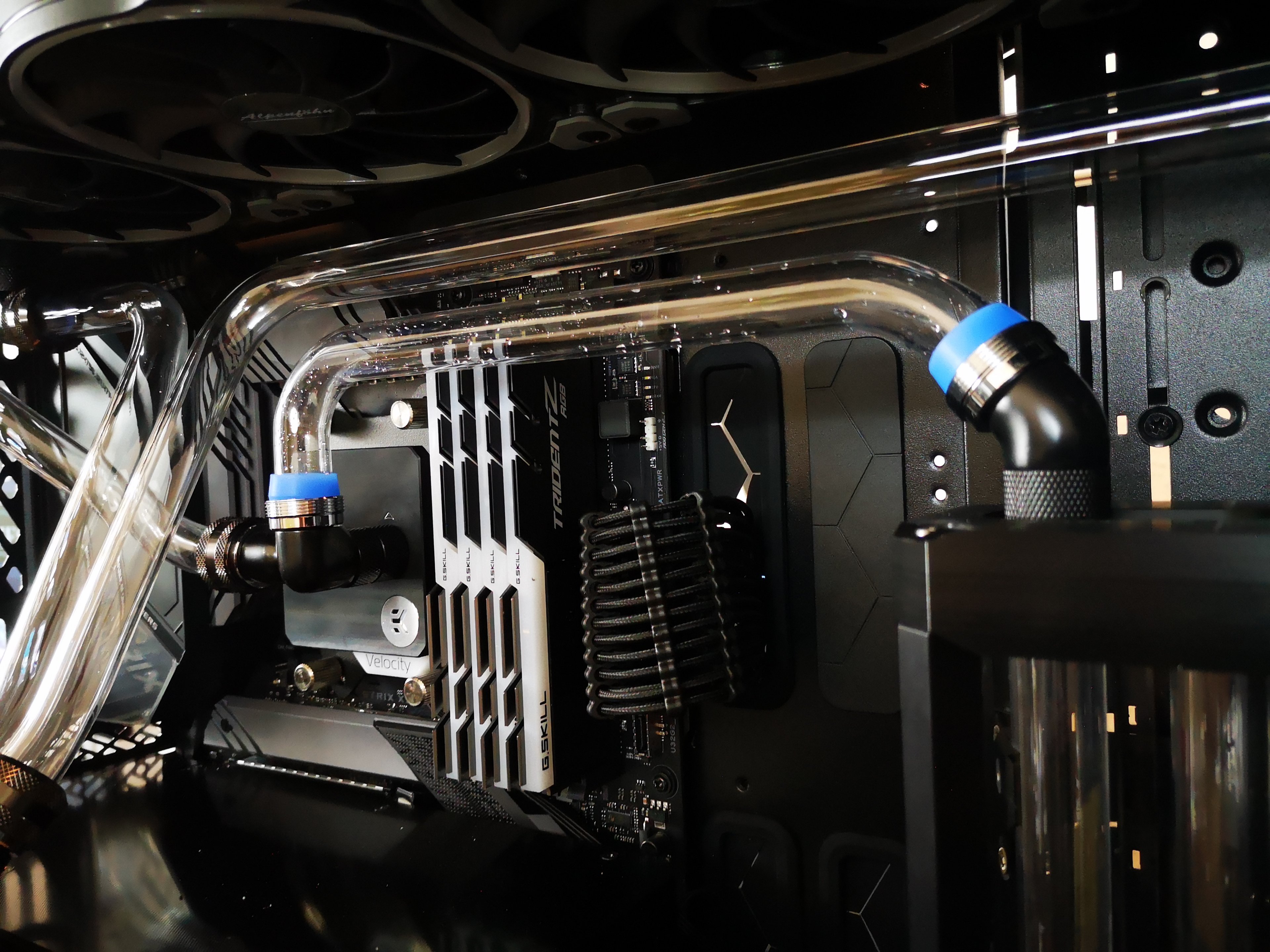 Ich würde gern den Flow Sensor (warum muss der so gewaltig sein?) gerne woanders platzieren, die einzige Stelle die dafür im Frage kommt ist der Ausgang am Front Radi. Keine Ahnung ob es danach noch hübsch aussieht, evtl. muss ich die Tube soweit kürzen (Flowsensor + Snake Adapter) dass es mir nicht mehr gefällt... sollte es soweit kommen werde ich den Flow Sensor komplett ausbauen.