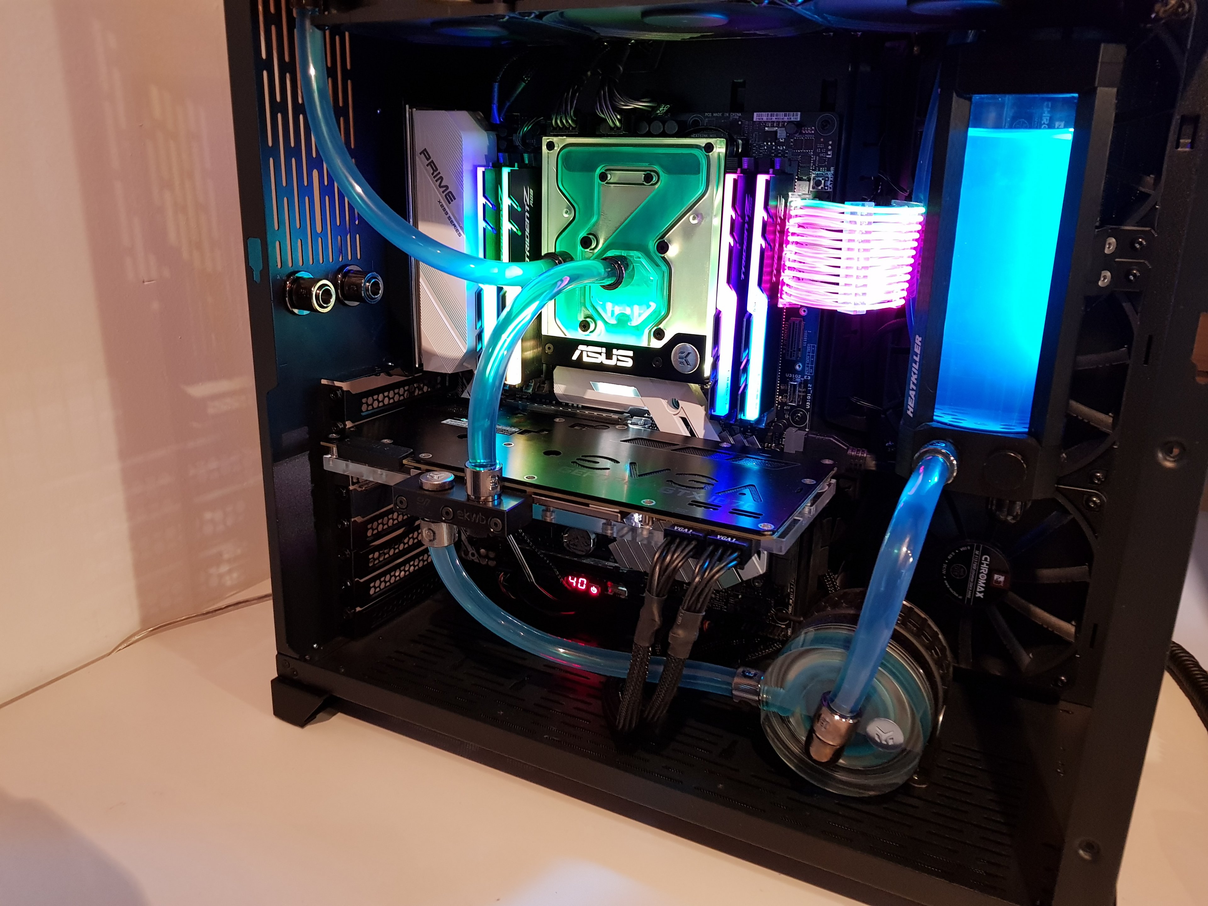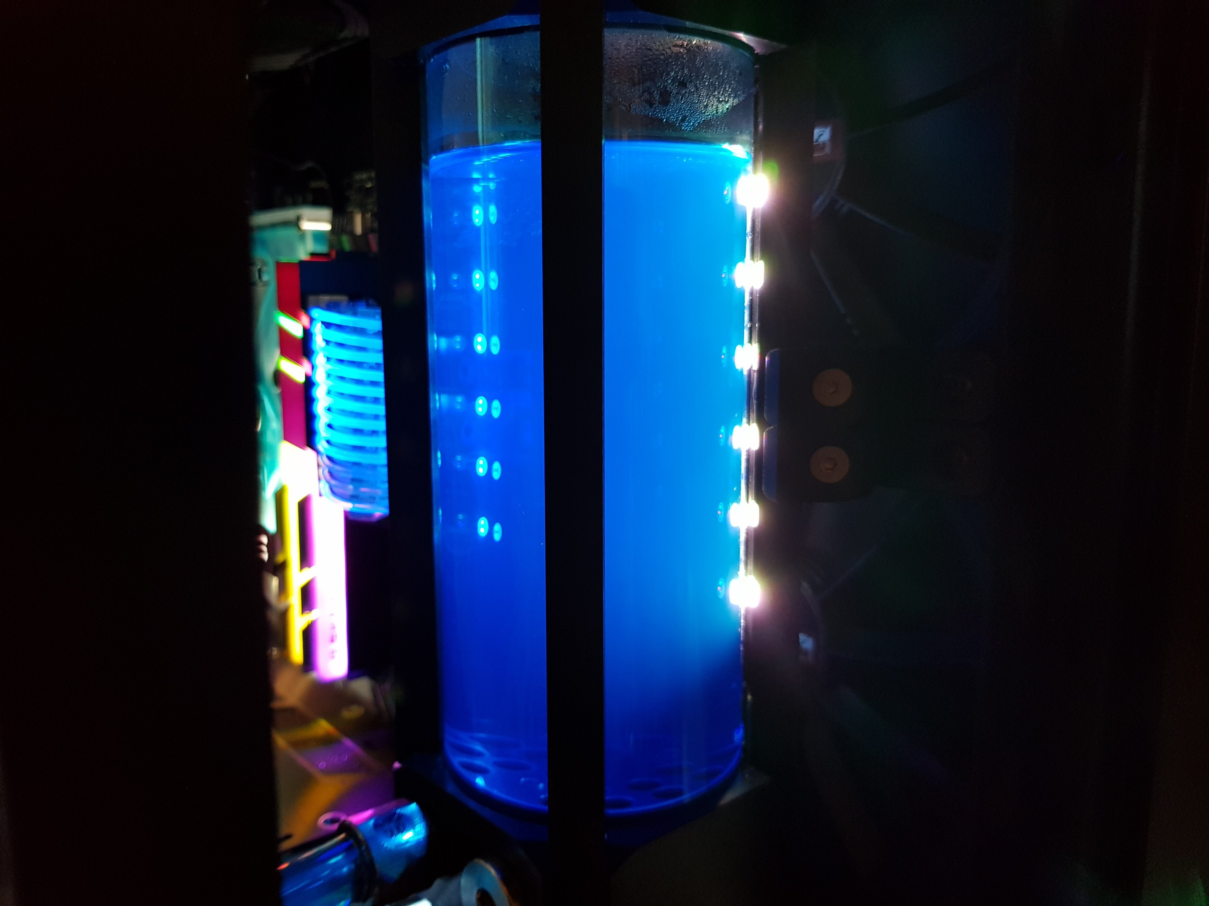 LEDs die das Mainboard mitsteuert: weiß nicht, ob das bei den AquaComputer AGBs geht aber normale LEDs gehen und ich muss sagen, ich habe jetzt mittlerweile alles abgeschaltet, weil mir das sogar zuviel ist. Und eine statische Beleuchtung des AGB von unten mit mehreren Strahlen nach oben hin, würde für MICH deutlich geiler aussehen, als Farben die da "rumblinken". 😏