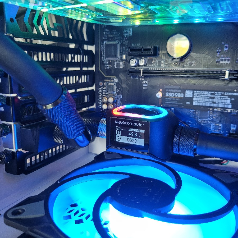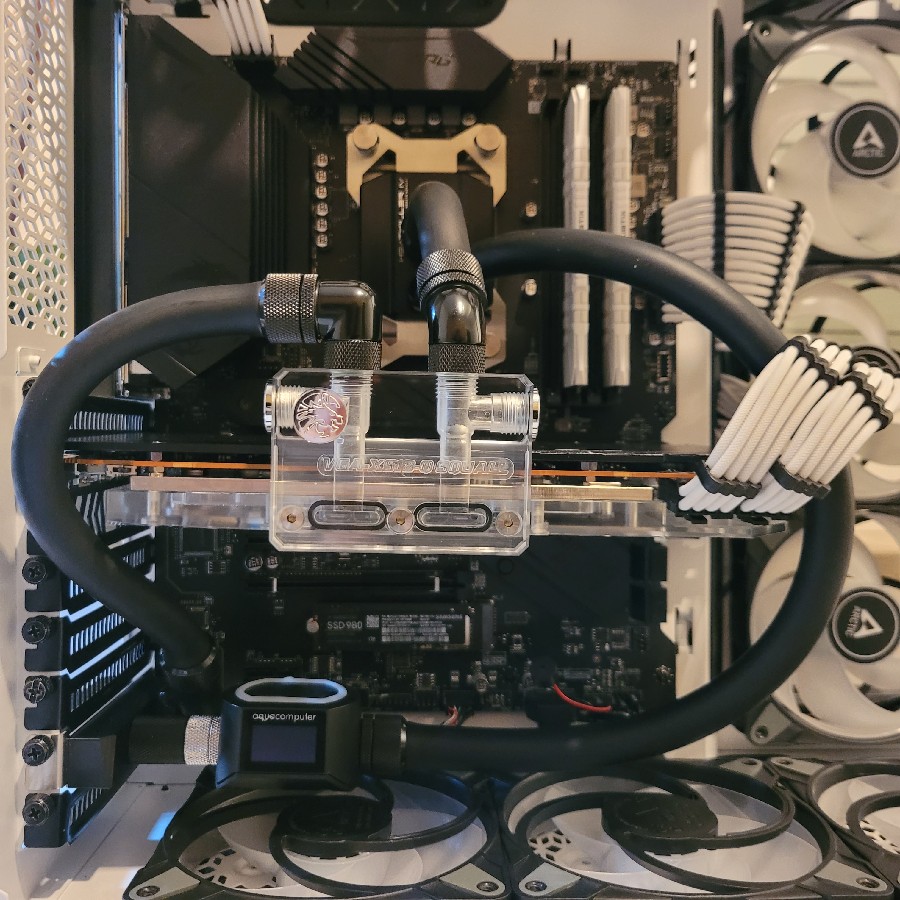 Nachdem das alte aus- und das neue eingebaut war, habe ich den GPU-Block an einen 2. HK-Tube angeschlossen und alles auf Undichtigkeiten hin überprüft.
