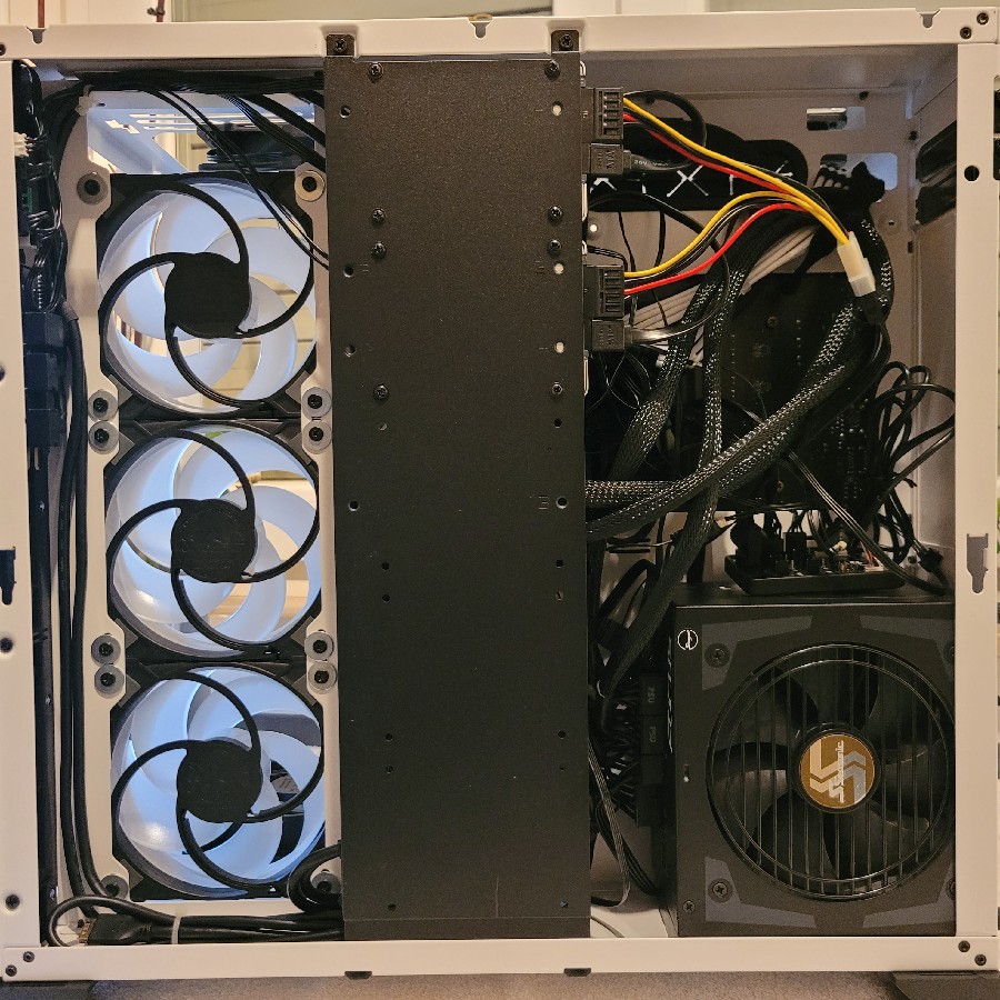 Erst alles Kabel, dann die Lüfter, SSDs, Netzteil und zu guter Letzt das Mainboard, welches nach dem Entleeren des CPU-Kühlers direkt ins MetallicGear Neo Cube verbaut wurde.