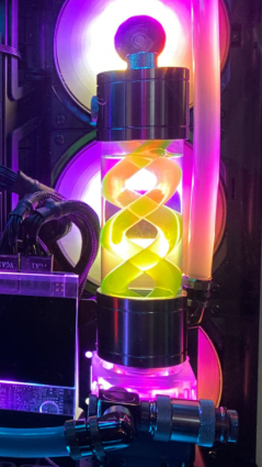 Die Wakü sollte bunt werden, die GPU Einheit wird wahscheinlich RGB enthalten, am liebsten wäre mir eine AGB/Pumpen Combo, die beleuchtet ist z.b. wie auf dem Bild