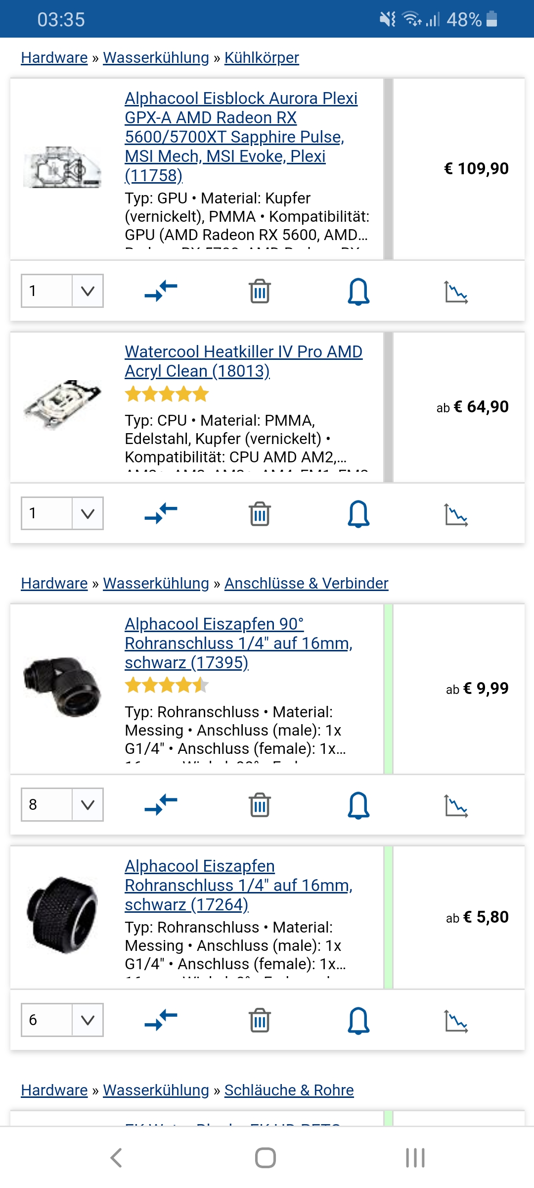 Nimm die PETG von Bitspower. Gibt's bei Caseking mit 1m Länge. Hast du 1. weniger Verschnitt und 2. sind die Tubes echt gut, hab die auch im Einsatz.