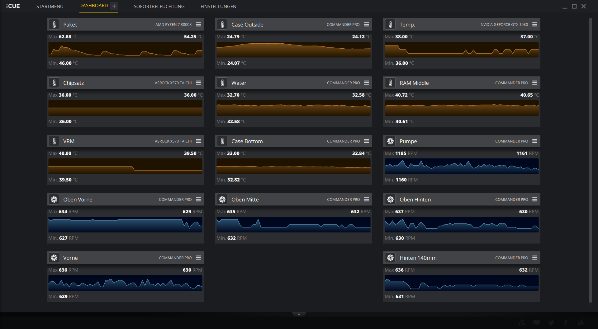 Das sieht vom Prinzip genau so in iCue aus. Hier mal mein Dashboard in iCue: