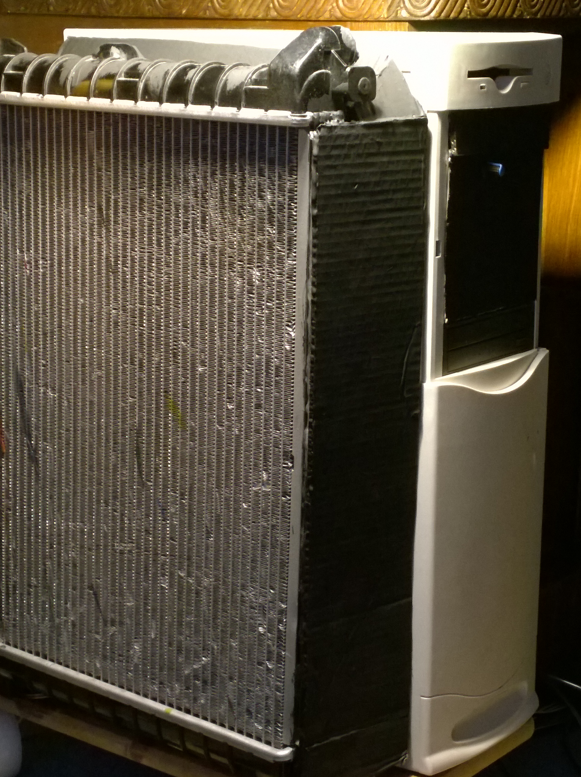 Du könntest mit einem Transistor und zwei Dioden eine OR-Schaltung bauen, um eine 12V Quelle im Keller aktiv zu schalten... sobald von einem der PC-Netzteile (oder beiden Netzteilen) 12V anliegt, wird die Pumpe und die Belüftung vom Radiator angeschaltet.