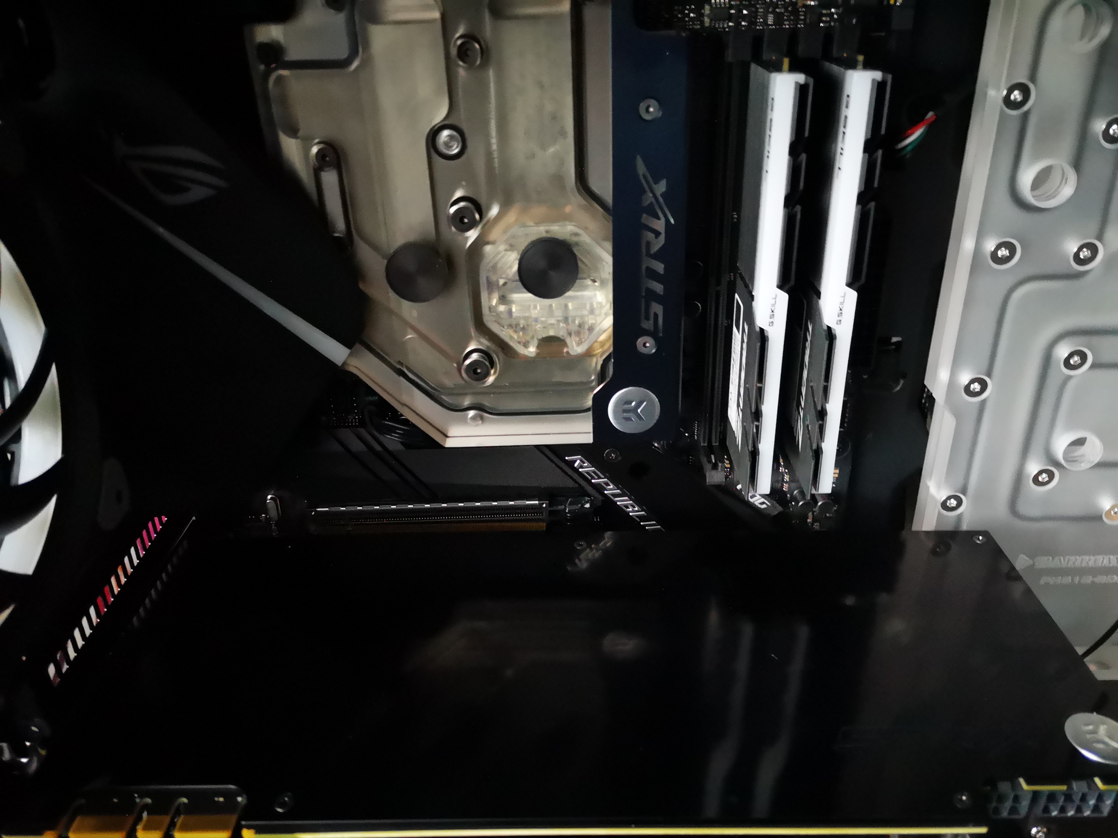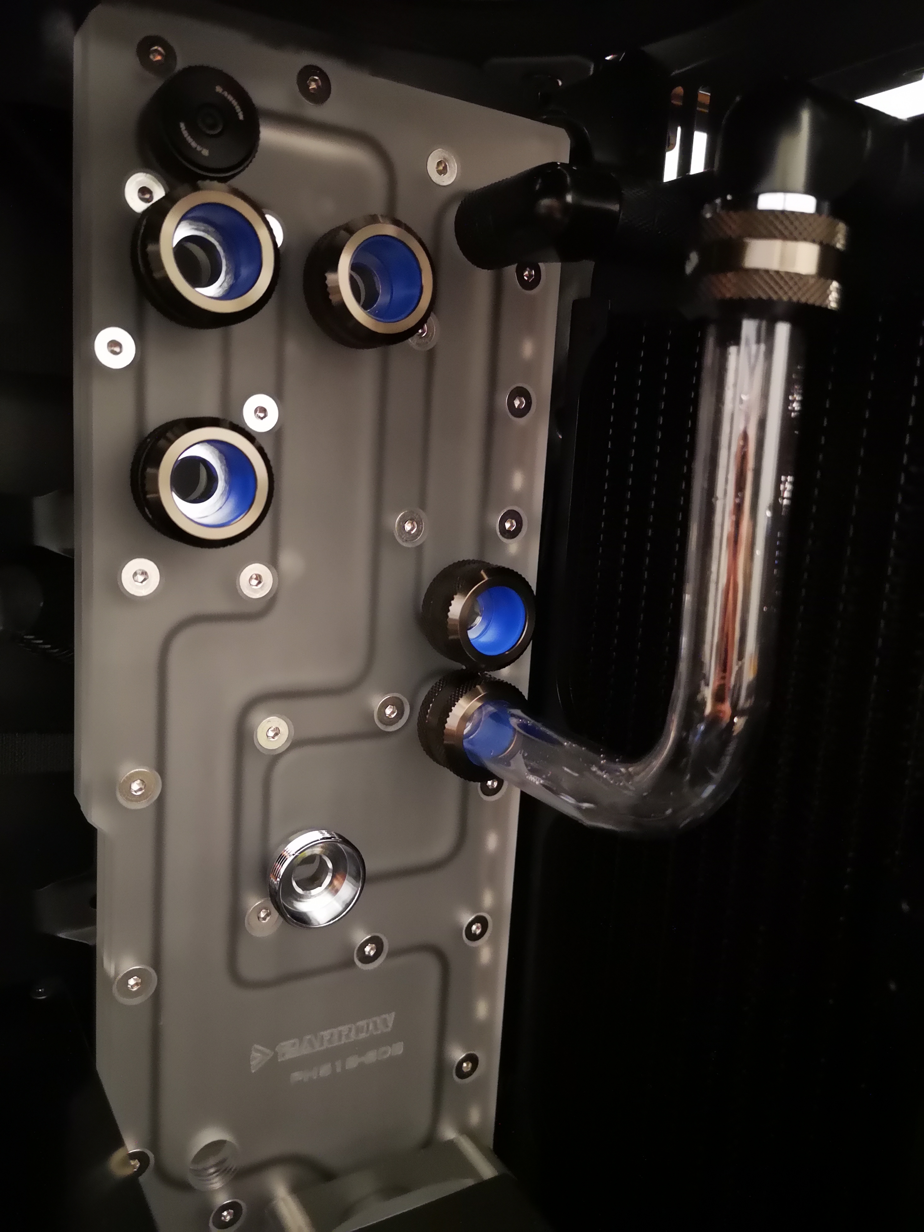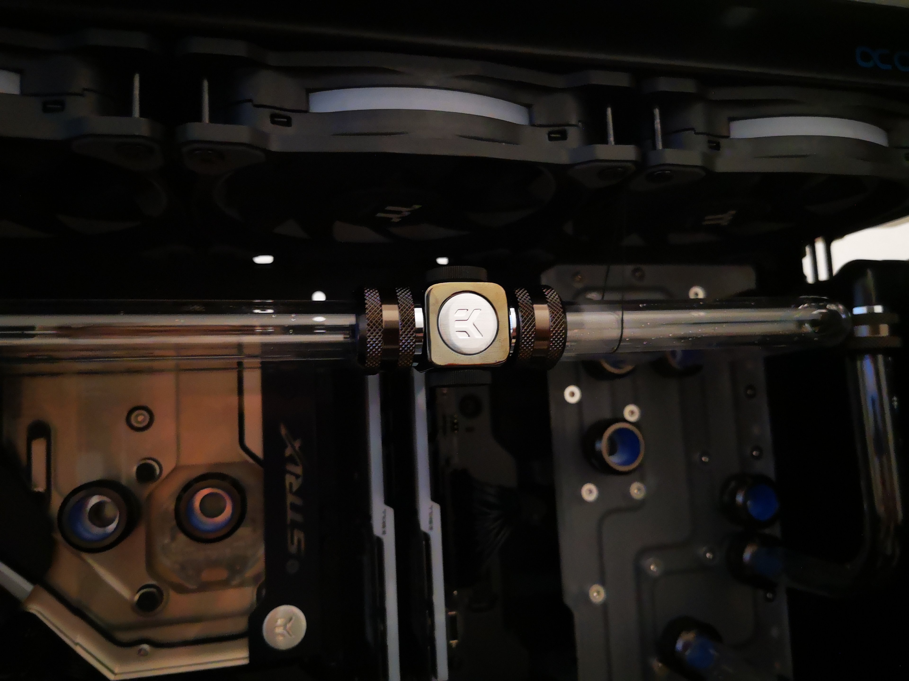 Diese Stelle war meine größte Sorge, hier wird der 2. Radiator mit der Distro Platte verbunden, alleine über Adapter mit 1/4 IG, ich wusste nicht ob ich es mit den wenigen Abstandshaltern korrekt hinkriege, hat aber gut geklappt beim 2. Anlauf super geklappt.