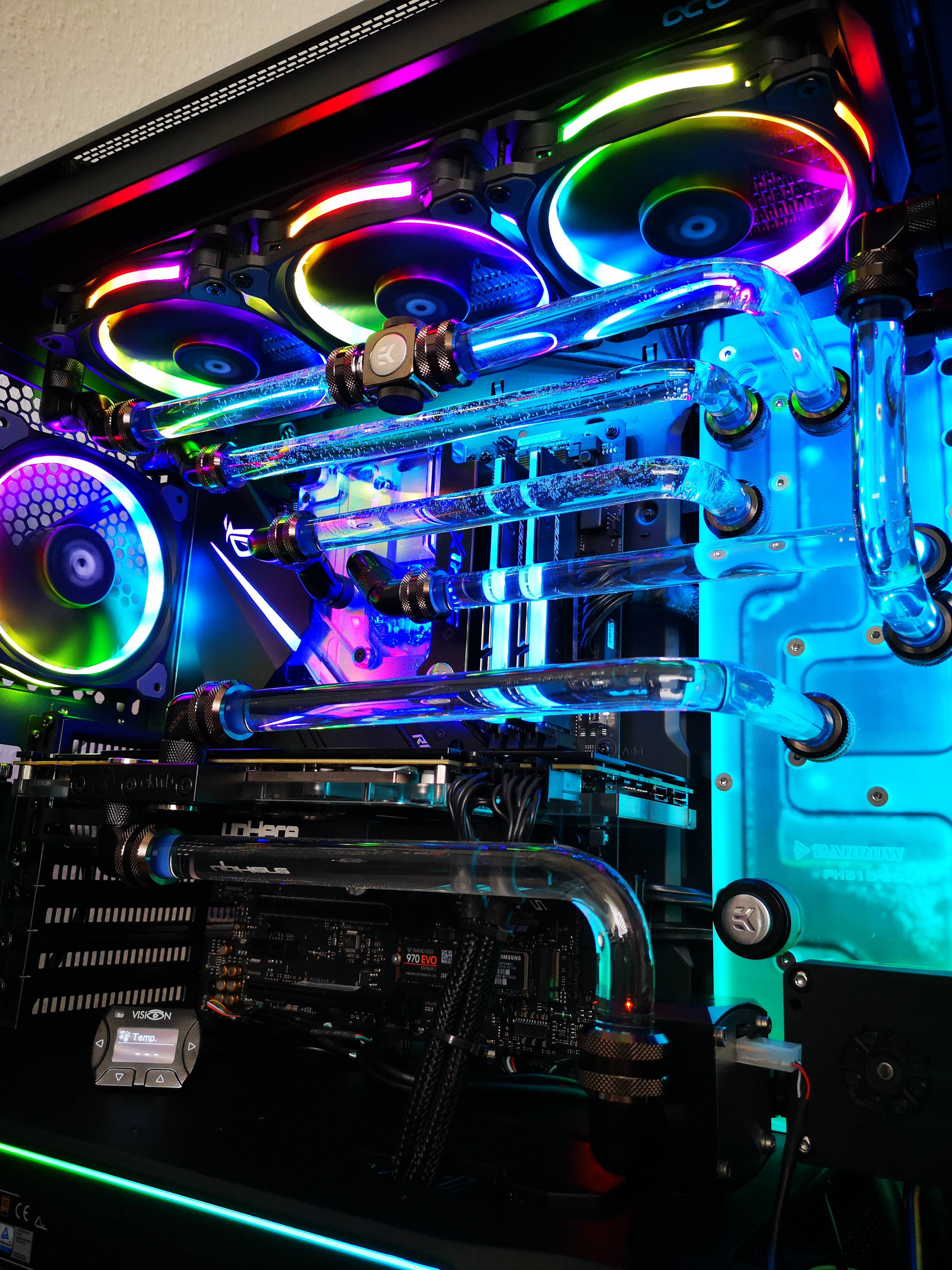 Habe einen RGB Strip in den Deckel verlegt da er hinter dem Radiator nicht genug Platz hatte um sich zu entfalten ich finde sieht gut aus.