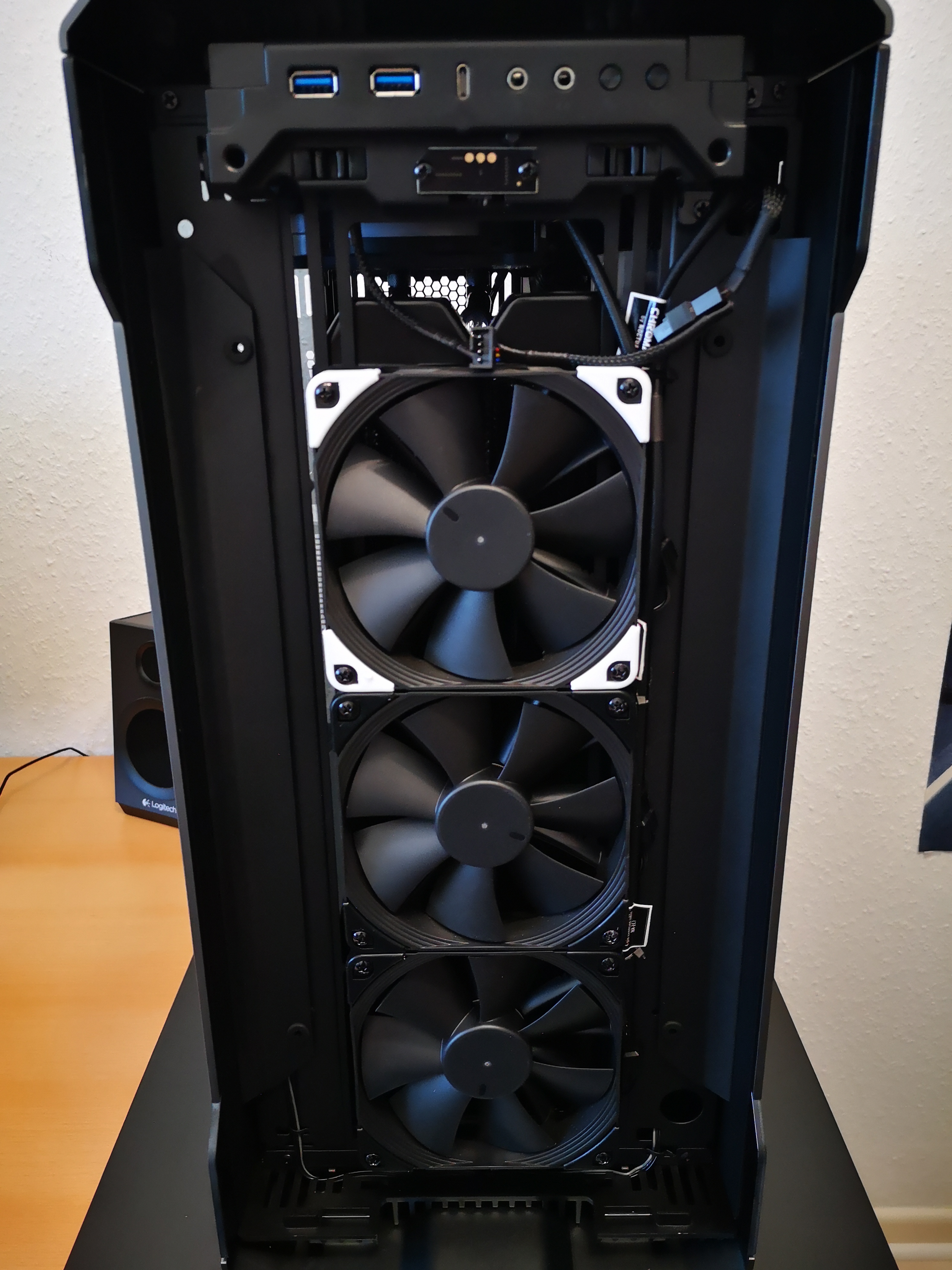Ja die LL120er wollte ich auch, habe mich dann aber für die Riing Plus 12 entschieden, sind etwas dezenter was RGB angeht. Diese sind oben (3x) verbaut + 1x Back. Aktuell suche ich 3 Neue nur für Front.