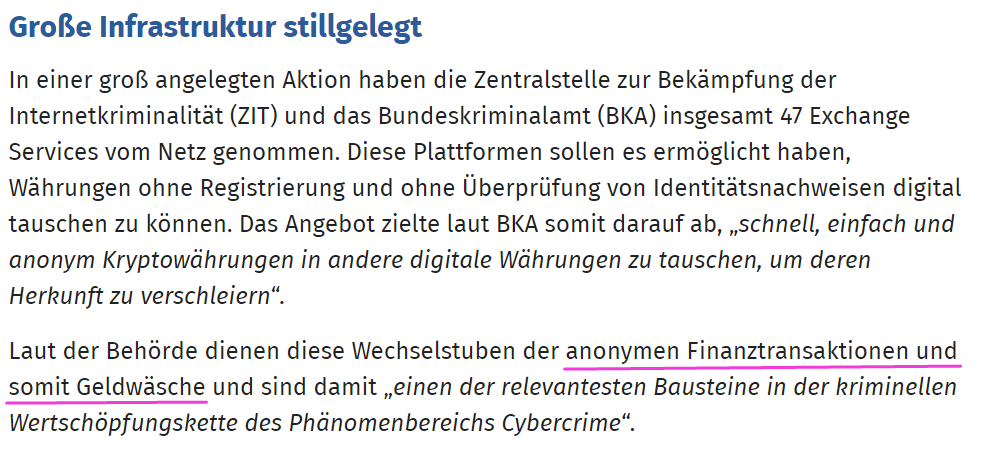 Dem Bundeskriminalamt ist offenbar ein bedeutender Schlag gegen digitale Geldwäscher gelungen, die sowohl herkömmliche Währungen als auch Kryptowährungen umgetauscht haben sollen. Im Zuge der Operation soll auch eine umfangreiche Infrastruktur mit zahlreichen gehosteten Exchange Services (Wechselstuben) abgeschaltet worden sein.