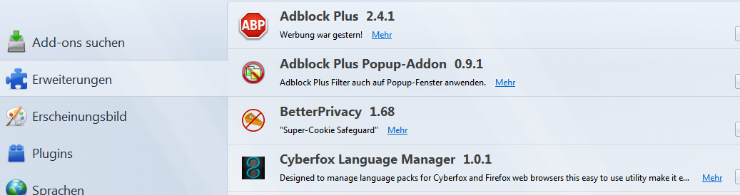 Nun gibt es Firefox/Cyberfox in 27, und ich habs jetzt am PC gewagt. Das Ergebnis ist dasselbe! Nun kann ich Cyberfox gar nicht mehr benutzen. Ist das der tiefe Sinn dieses Programmes?