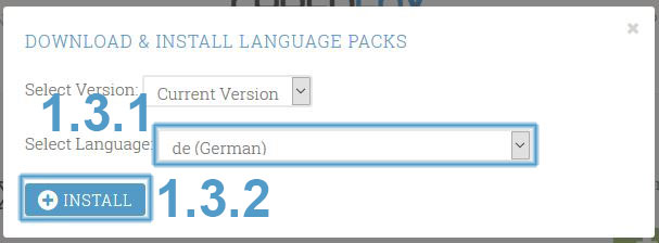 1.3.1 Im mittig erscheinenden Popup bei Select Language "de (German)" auswählen
