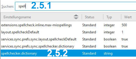 2.5.2 Beim Einstellungsnamen/Preference Wert "spellchecker.dictionary" doppelklicken