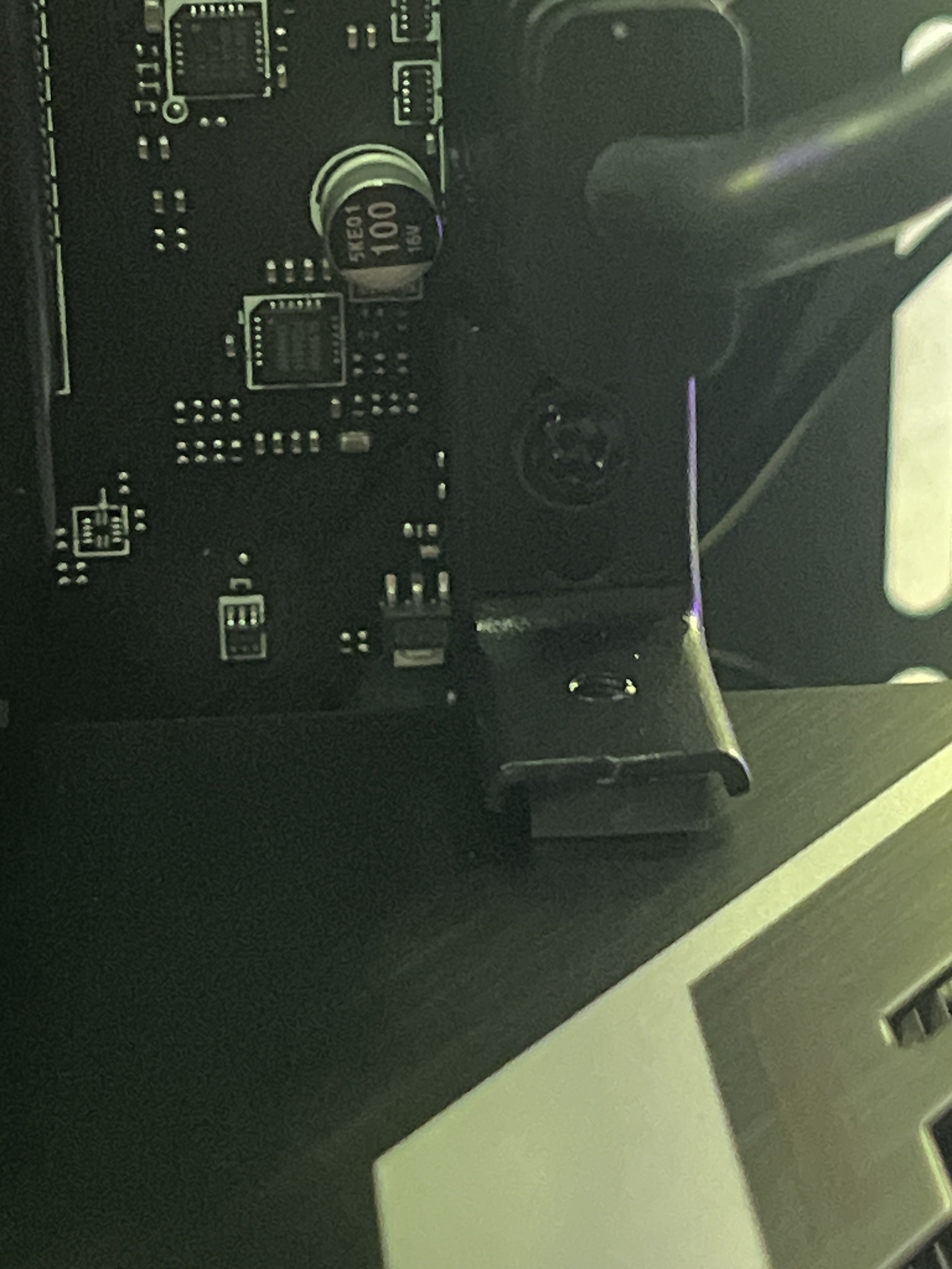 Ich würde den Sitz der Grafikkarte nochmal "prüfen", also versuchen, die Stecker etwas weg von dem Gehäuse-Teil da zu bringen: