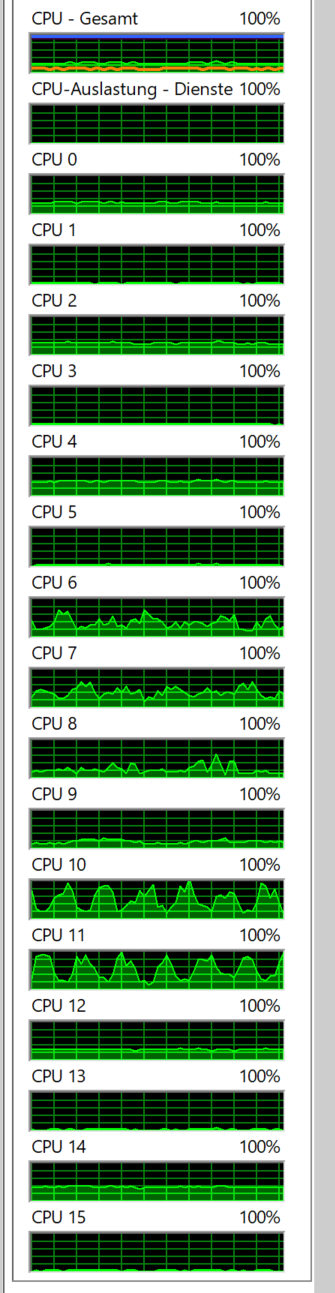 Muss aber dazu sagen dass Cyberpunk wirklich nicht alle Kerne auslastet, bei mir waren es gerade 11 Threads, also 5 komplett ohne Last. Würde sogar sagen dass die Hauptlast nur auf 4 Kernen liegt wenn ich das richtig sehe.