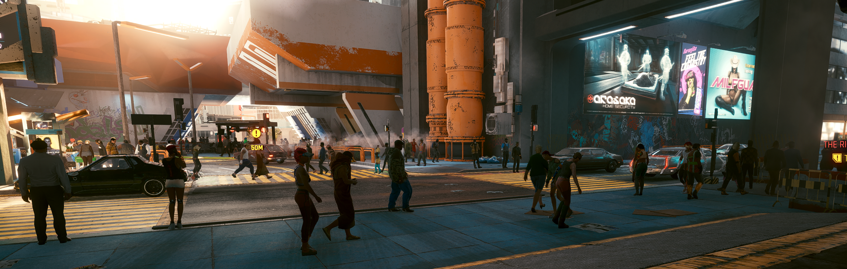 Vor allem sind die Straßen dort breiter und viel weniger befahren. In Cyberpunkt stecke ich beim fahren tatsächlich regelmäßig im Verkehr fest und kann auch nicht wirklich ausweichen. Wobei ich auch versuche halbwegs realistisch zu fahren und nicht wie der letzte Massenmörder auf der Flucht vor allem