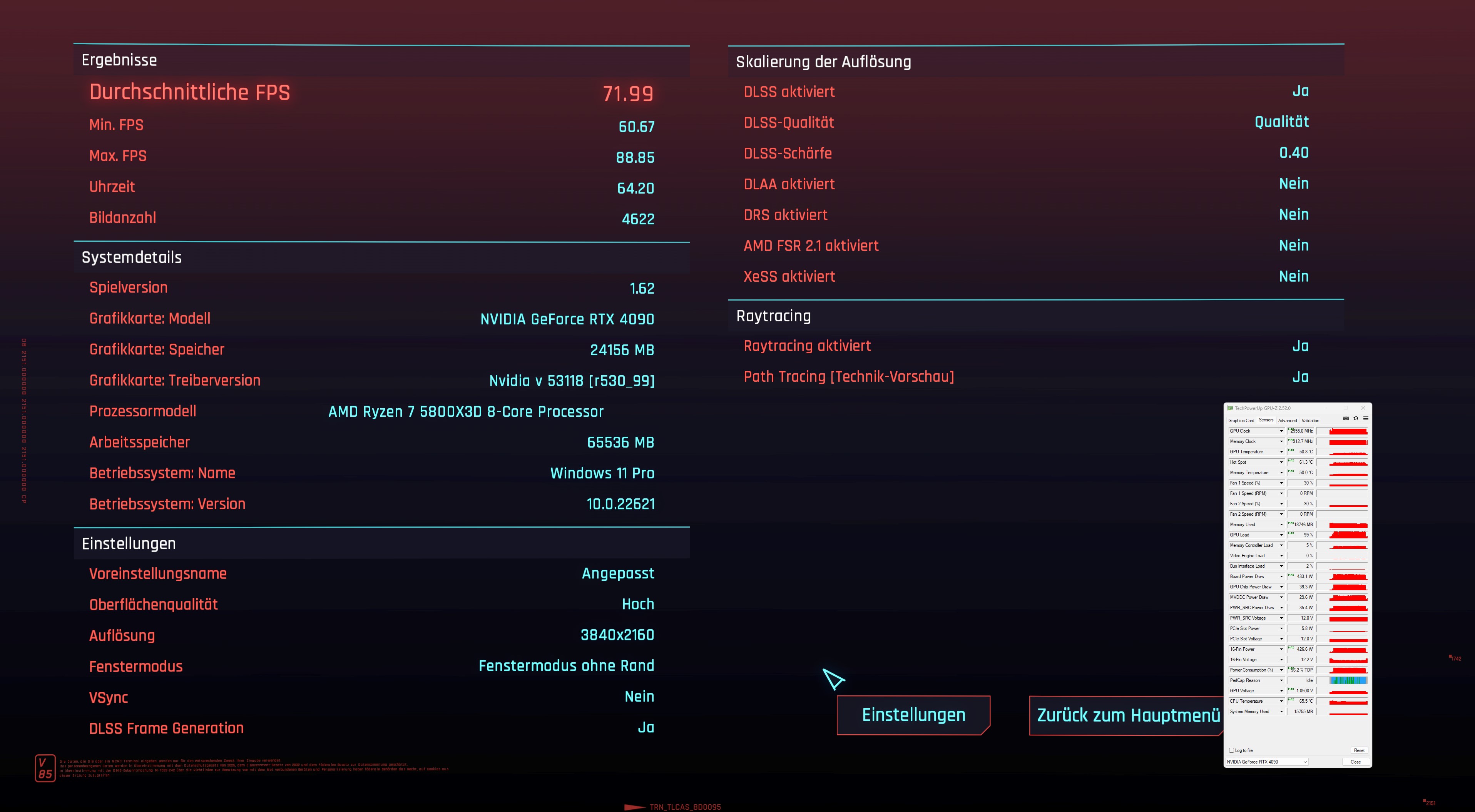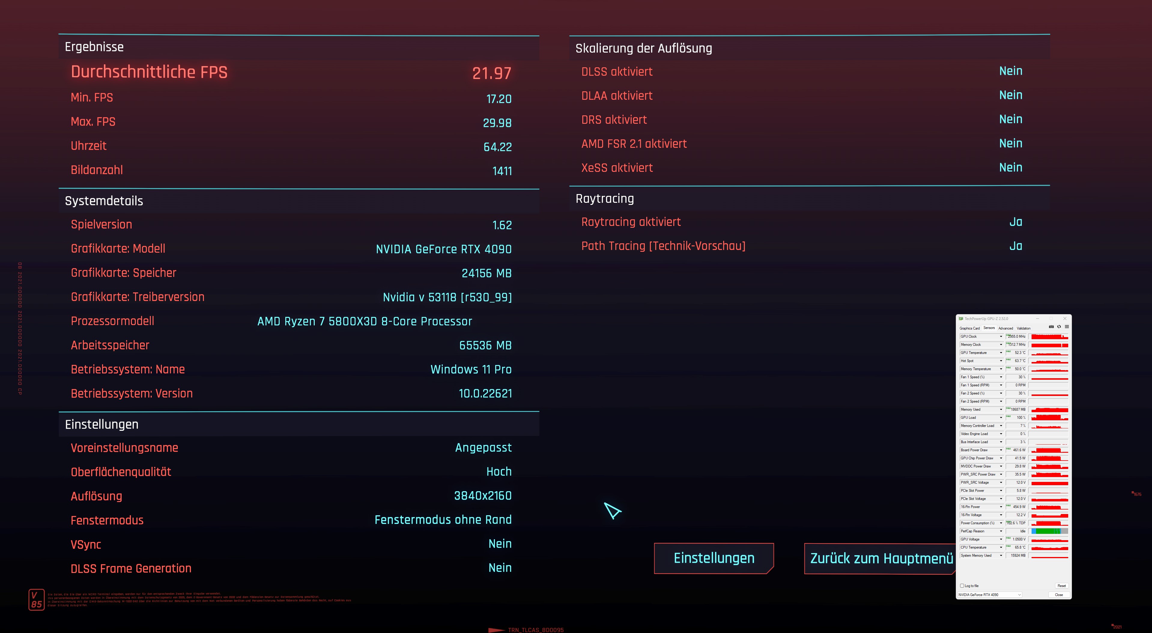 Die 4090 liegt bei 4K um 20 fps nativ mit Pathtracing in Cyberpunk. Die 4090 von @JohnDeclara liefert also sogar besser ab als zu erwarten wäre, wohl dank des OC Bonus.
