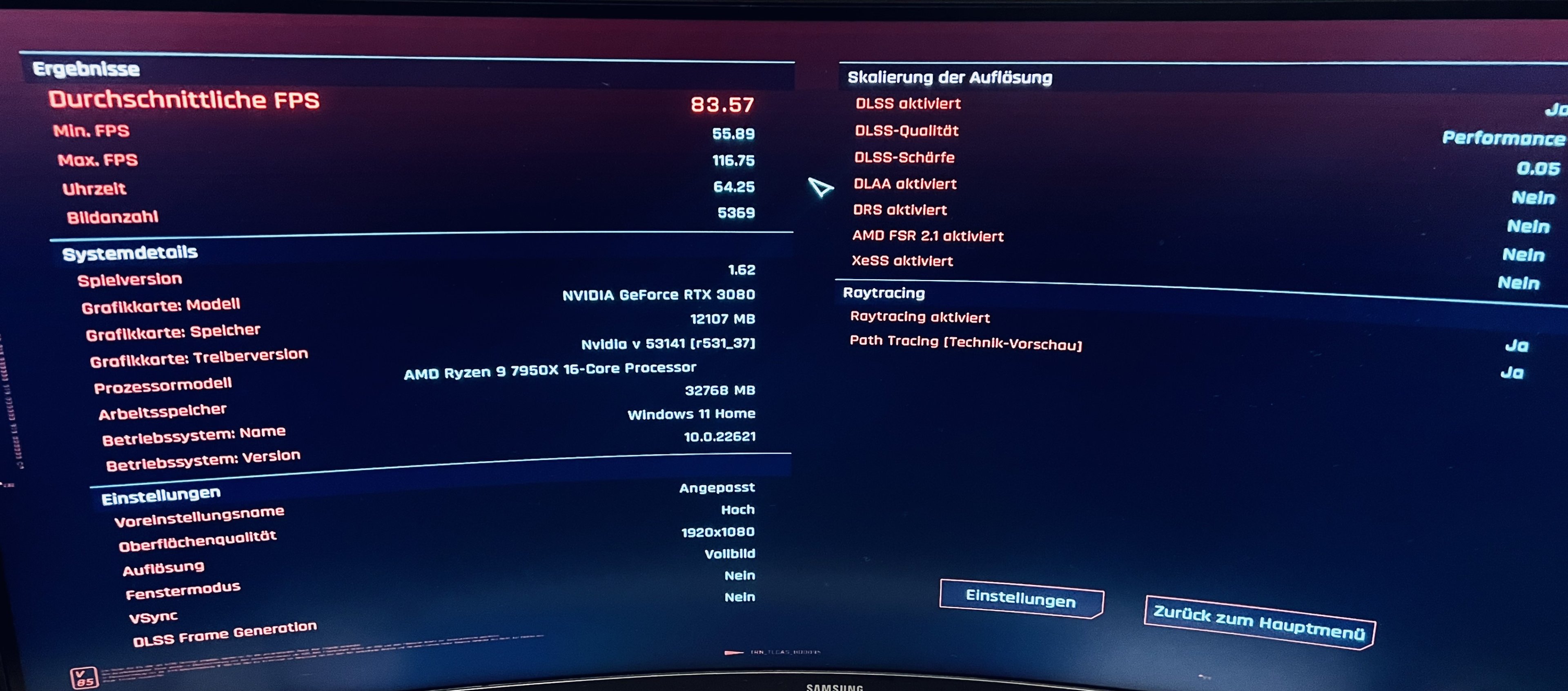 1.920 x 1.080, FRS 2/DLSS „Performance“: 83,6