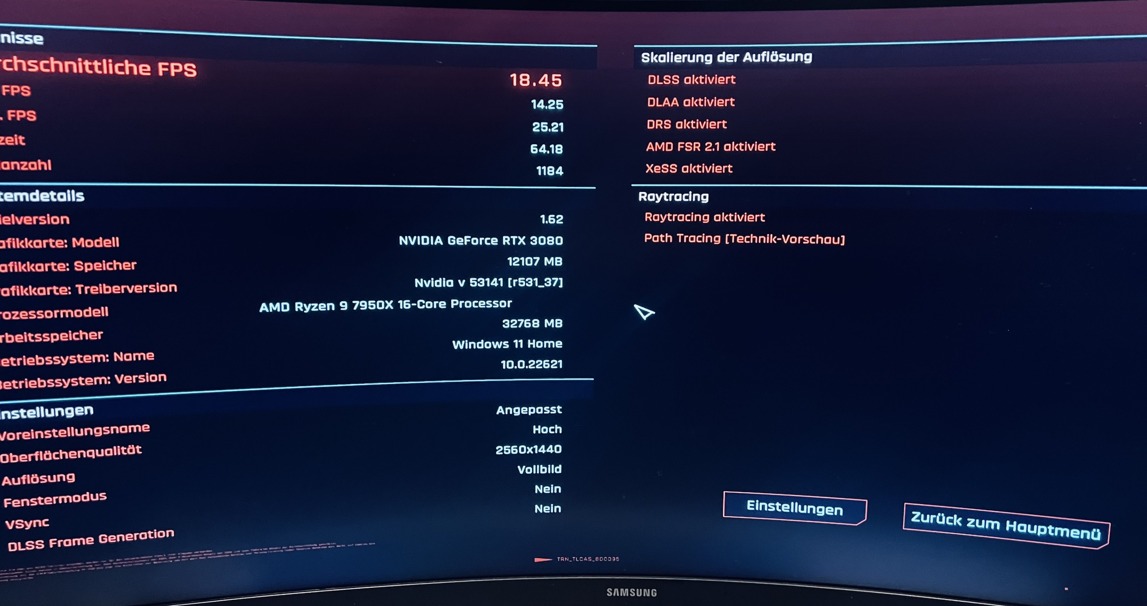 2.560 x 1.440, FRS 2/DLSS „Performance“: 89,4