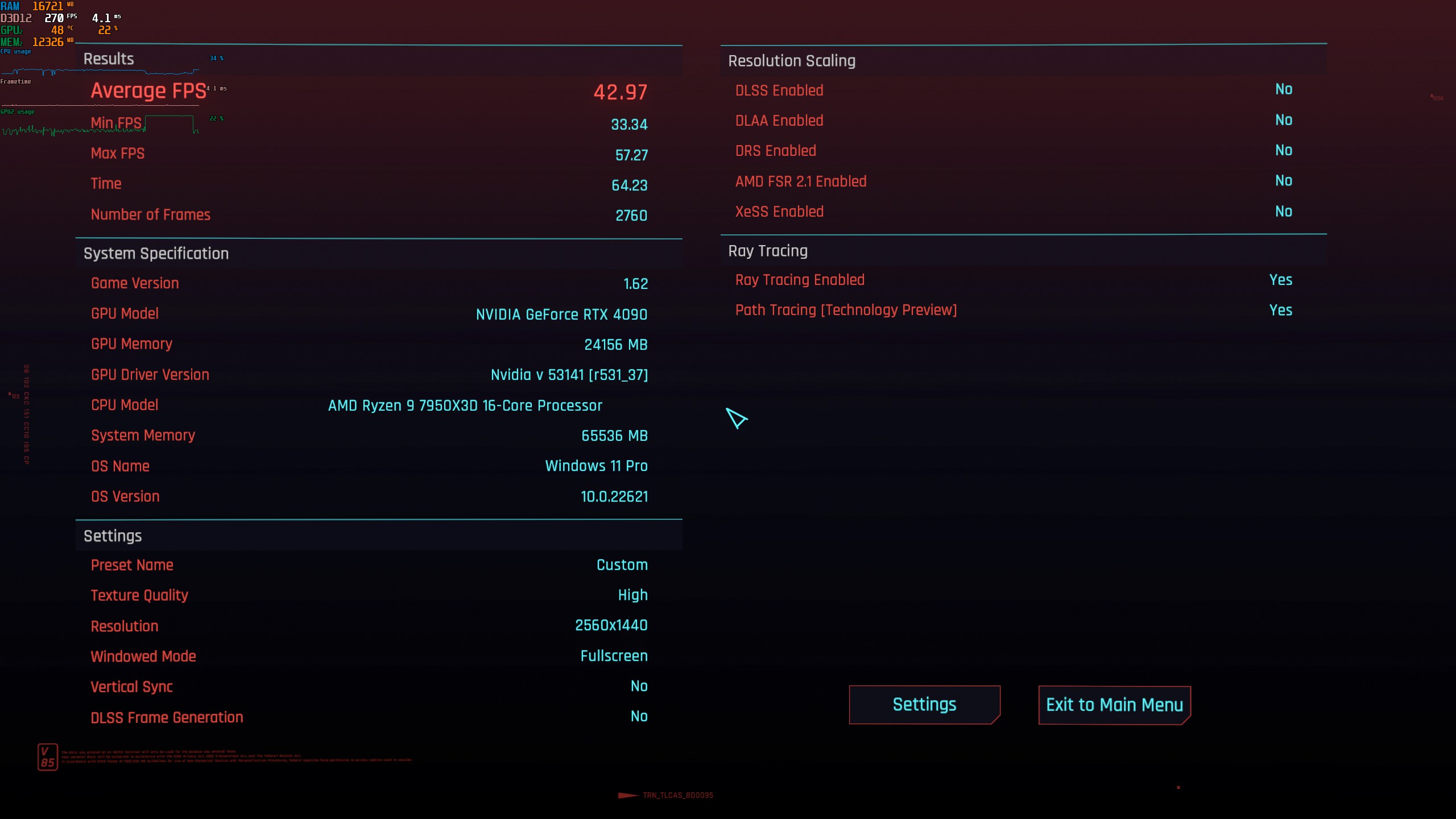 3.840 x 2.160, FRS 2/DLSS „Performance“: 44,42