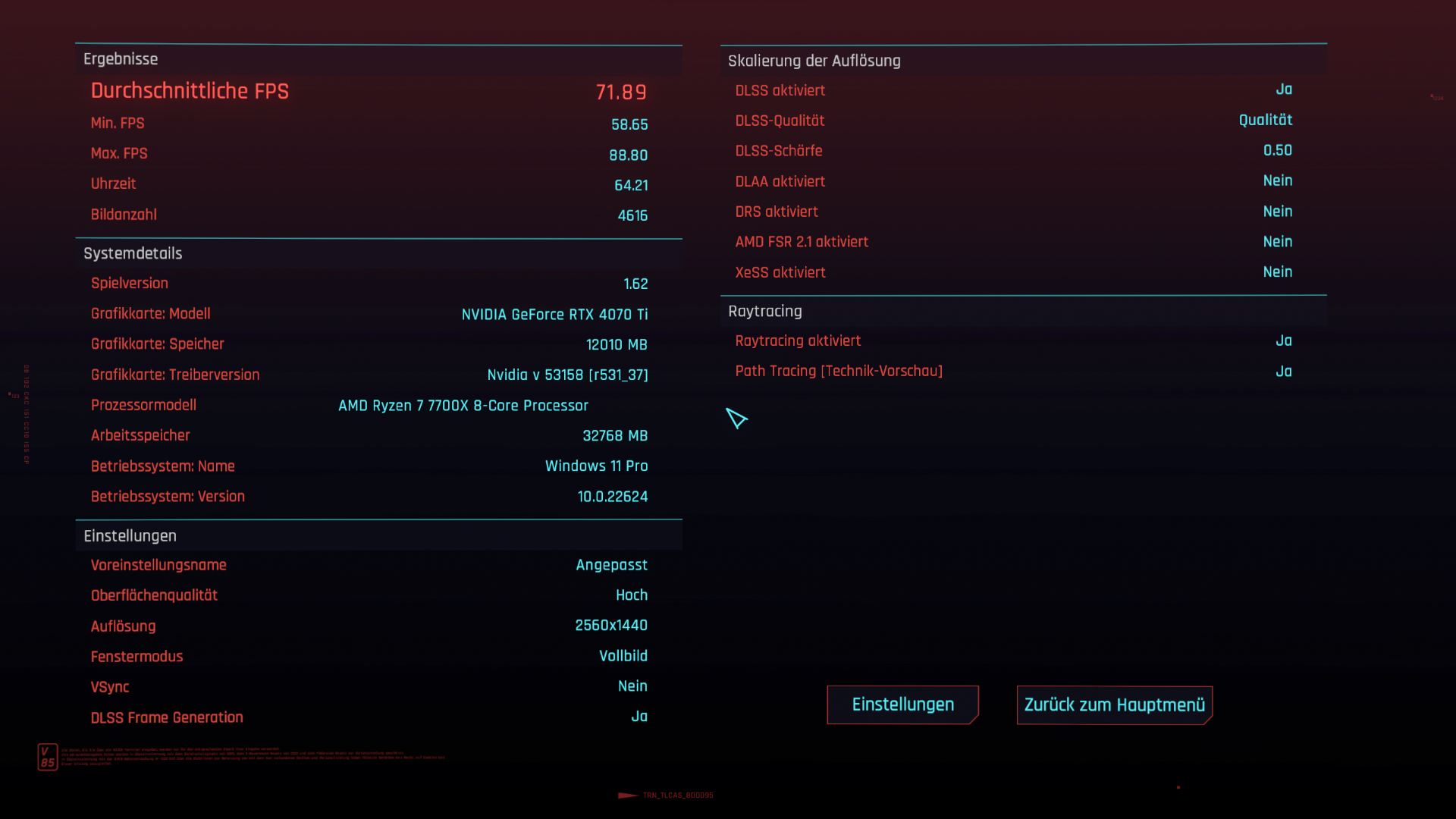Bereits zum Release von Navi 31 hatte sich abgezeichnet, dass die 7900 XTX unter maximaler Strahlenlast auch maximal mit den besseren Ampere Grafikkarten konkurriert. Hier scheint man nun irgendwo zwischen einer 3080 und einer 3080 Ti zu liegen. Das passt schon.