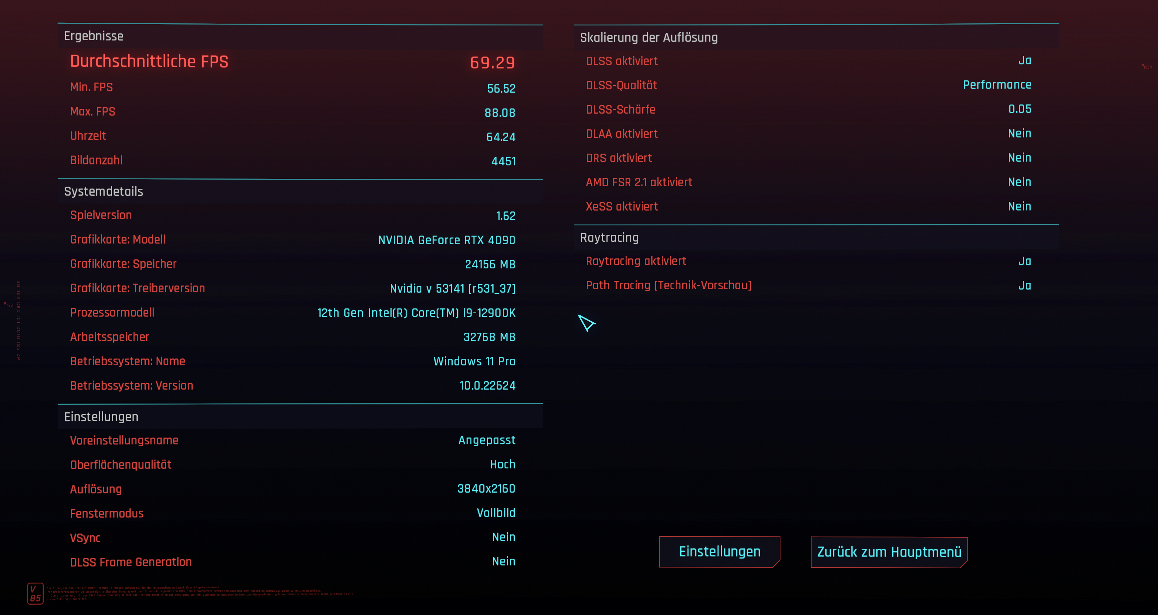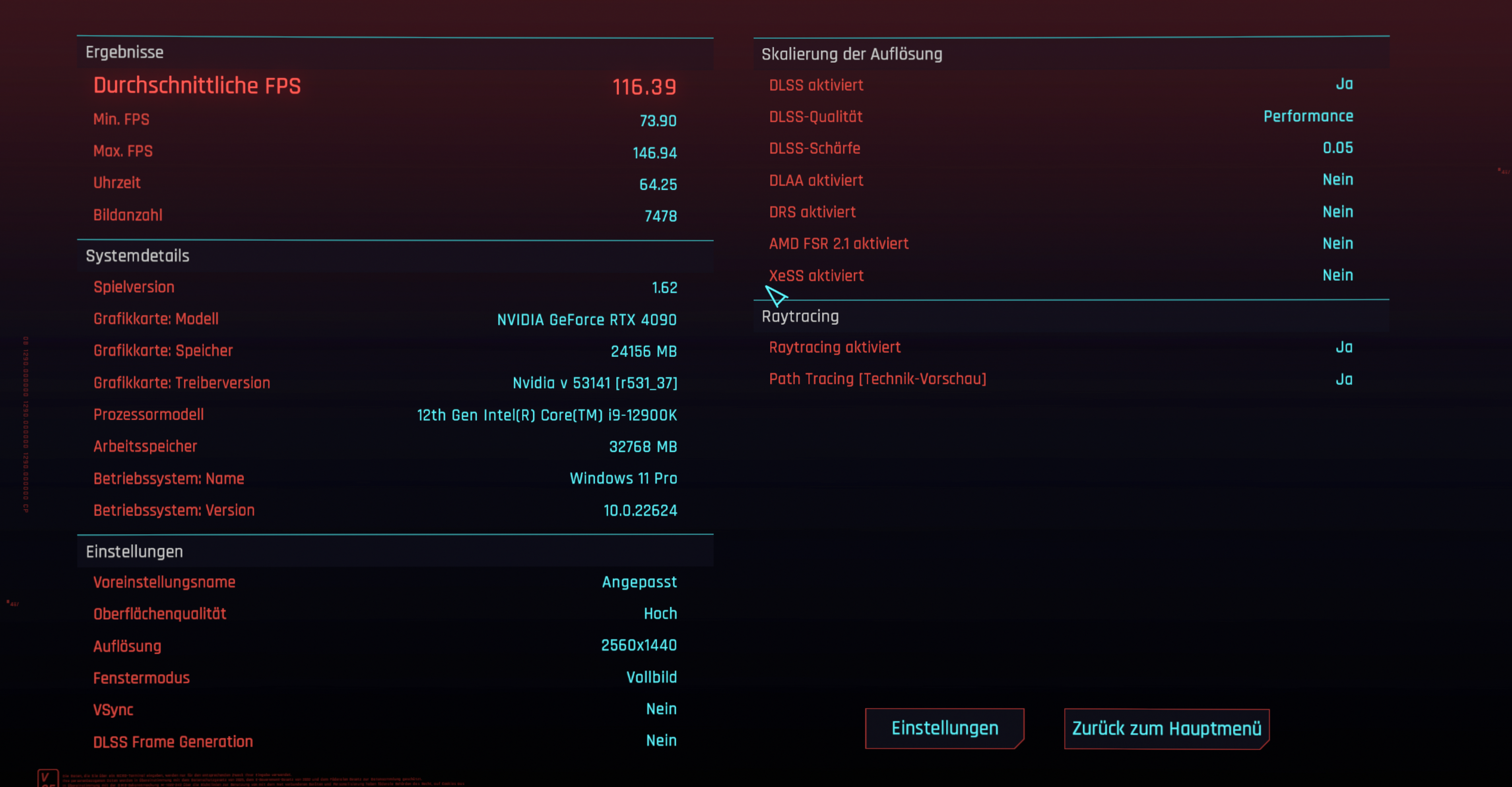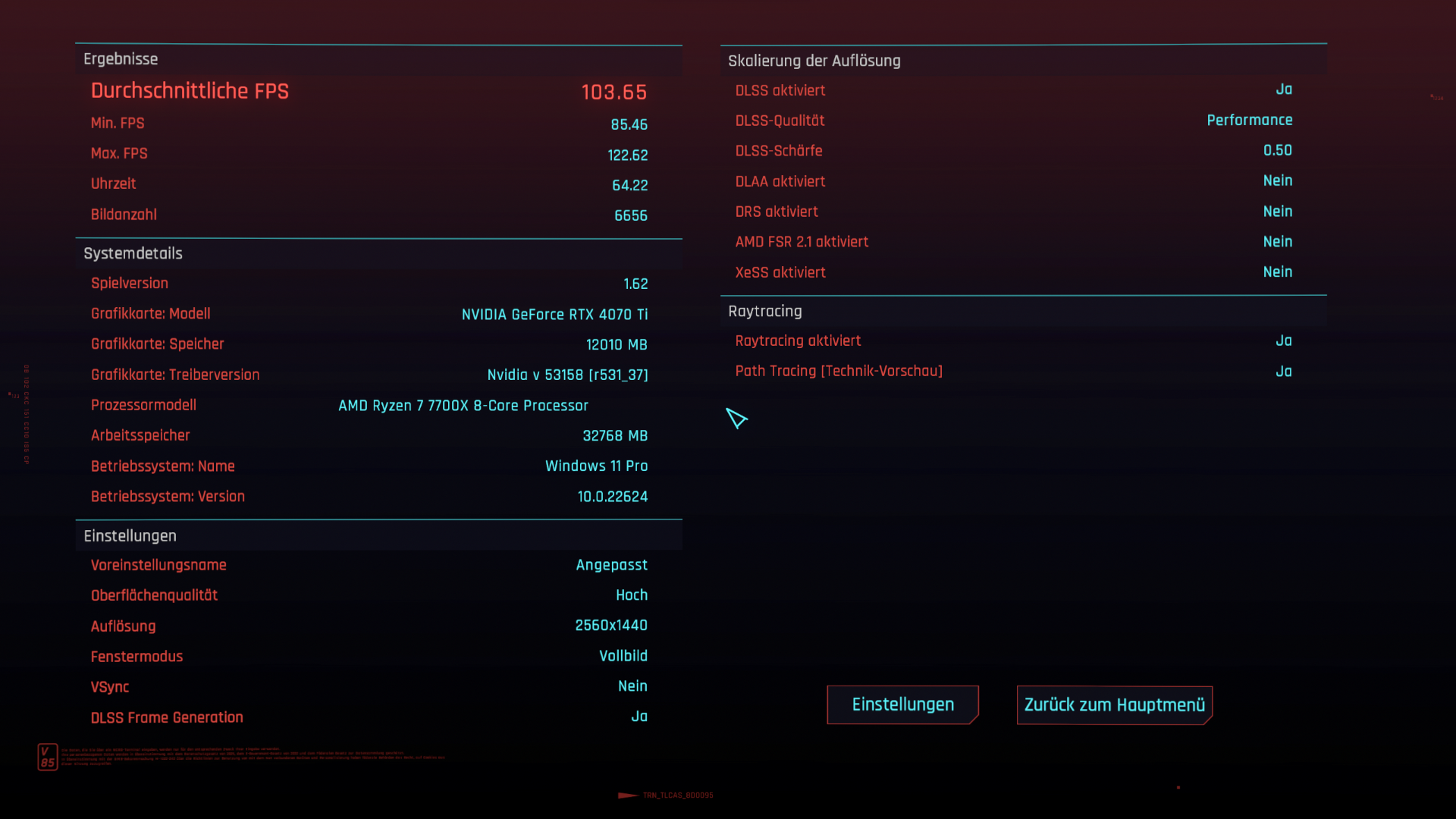 RDNA 3 schneidet in diesem Fall eigentlich so ab, wie man es erwarten kann und setzt sich von der 6800 XT je nach Auflösung deutlich ab. In 1080p sind es 103 % und in 1440p sind es 75 %. Ich werde heute mal die Auflösung auf 2160p stellen - das geht ja - und werde auch da noch mal schauen, was bei raus kommt. Interpoliere ich die Werte, kommt die 7900 XTX hier auf das Level der 3080.