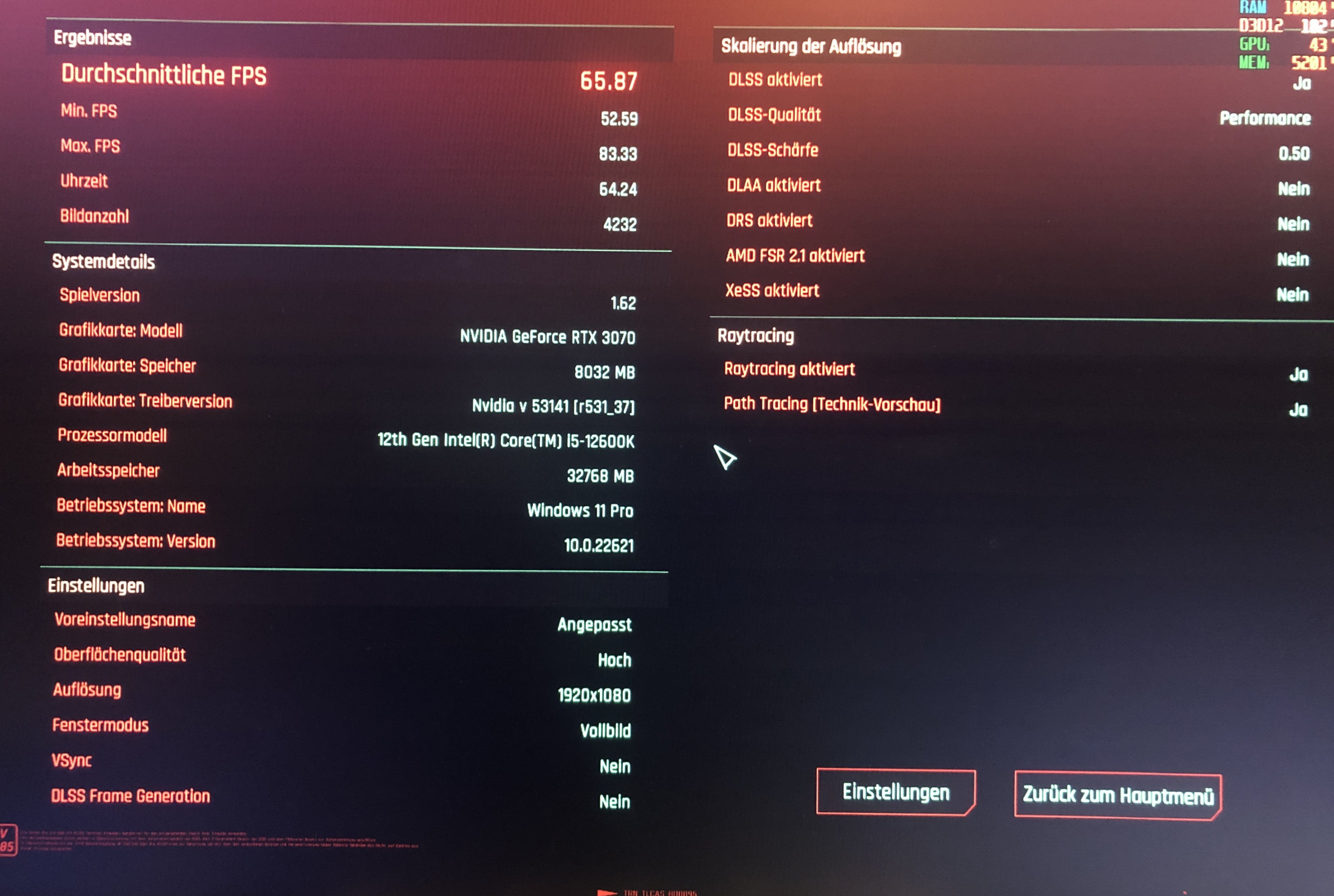 EDIT:derMutant schrieb:System: MSI Trio Z RTX 3070 Speicher@2000 MHz, I5 12600K, DDR4 32GB 3200 MHz