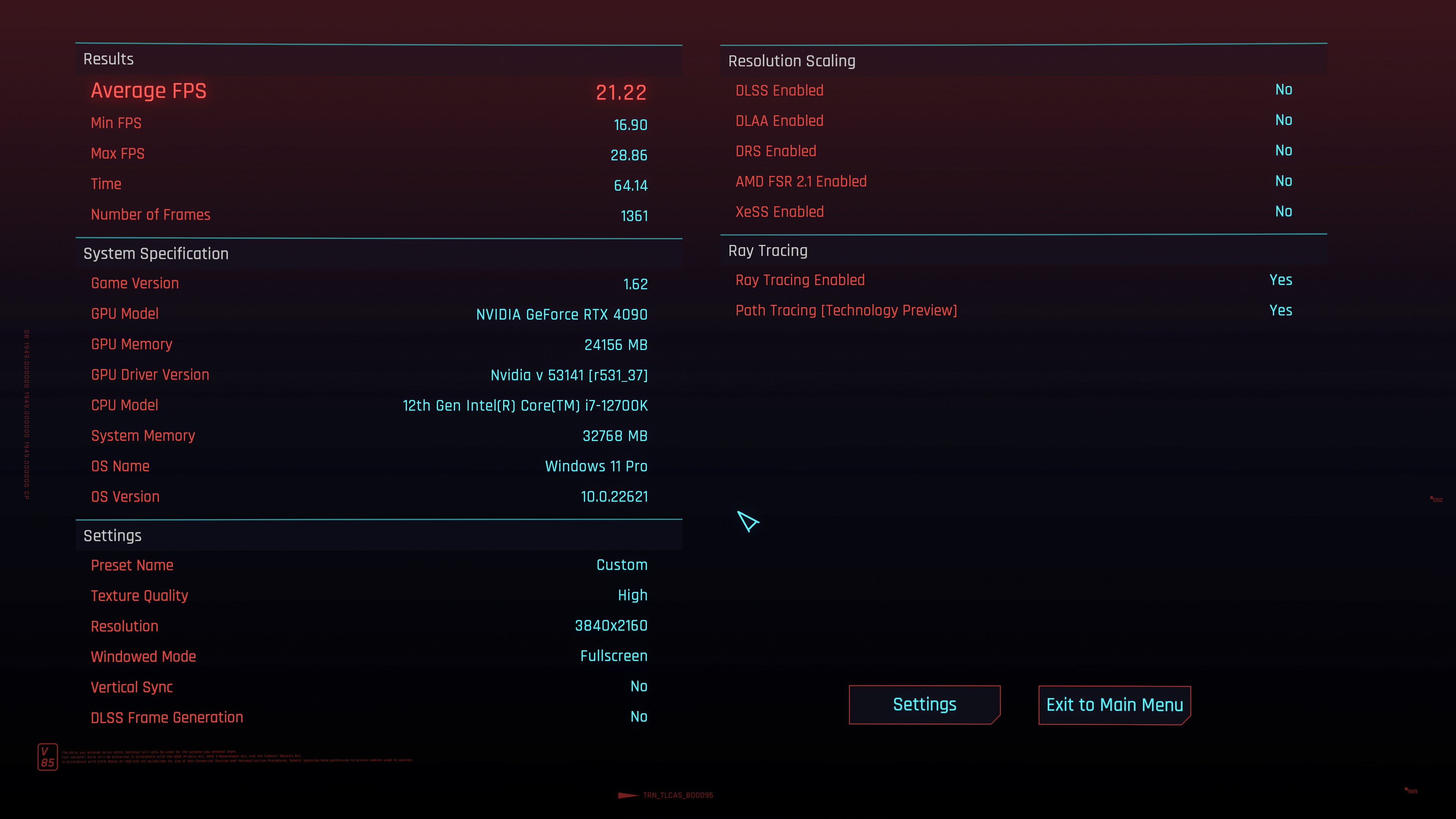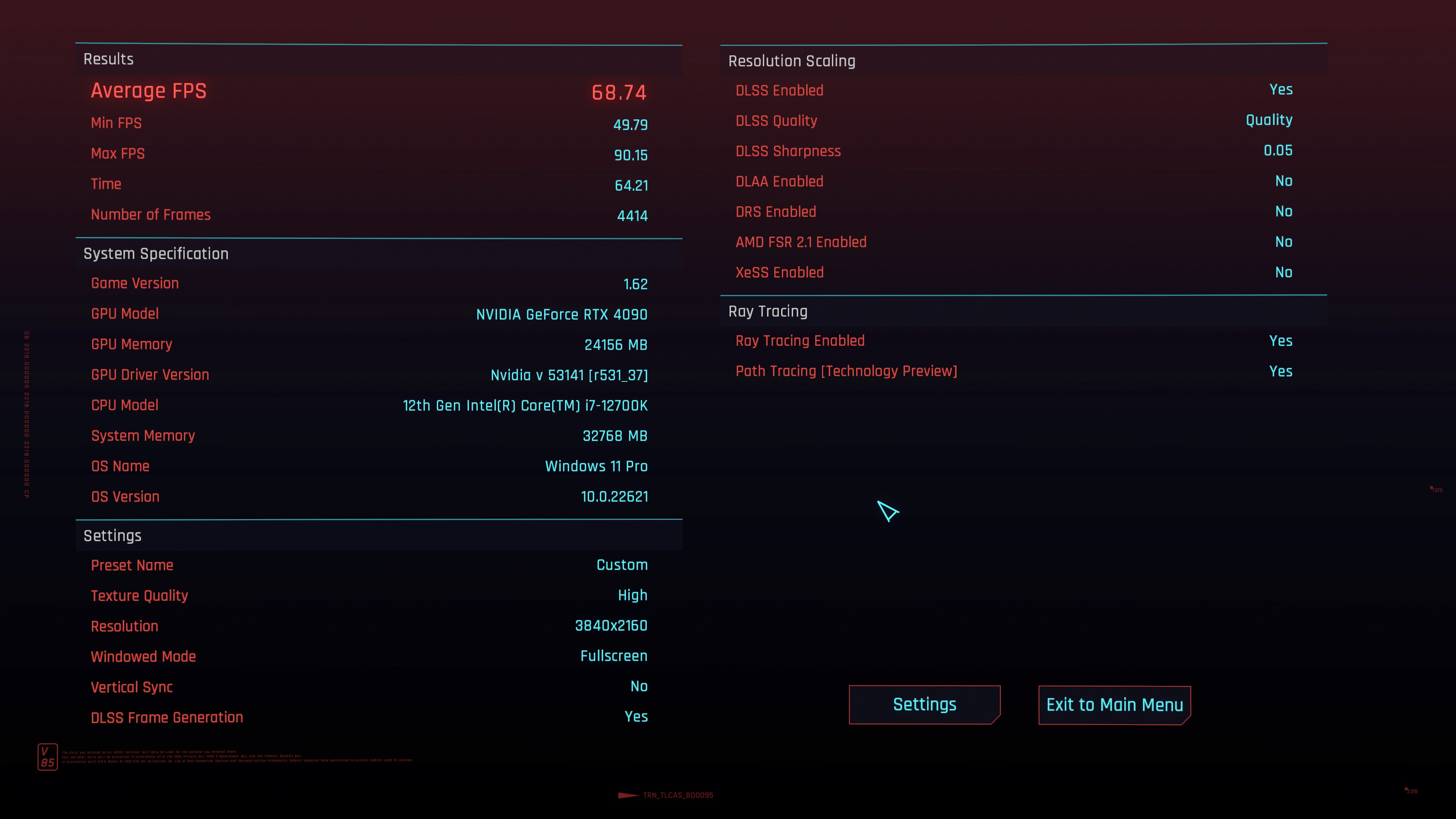 System: RTX 4090 UV, R7 5800X, DDR4-3533 CL16
