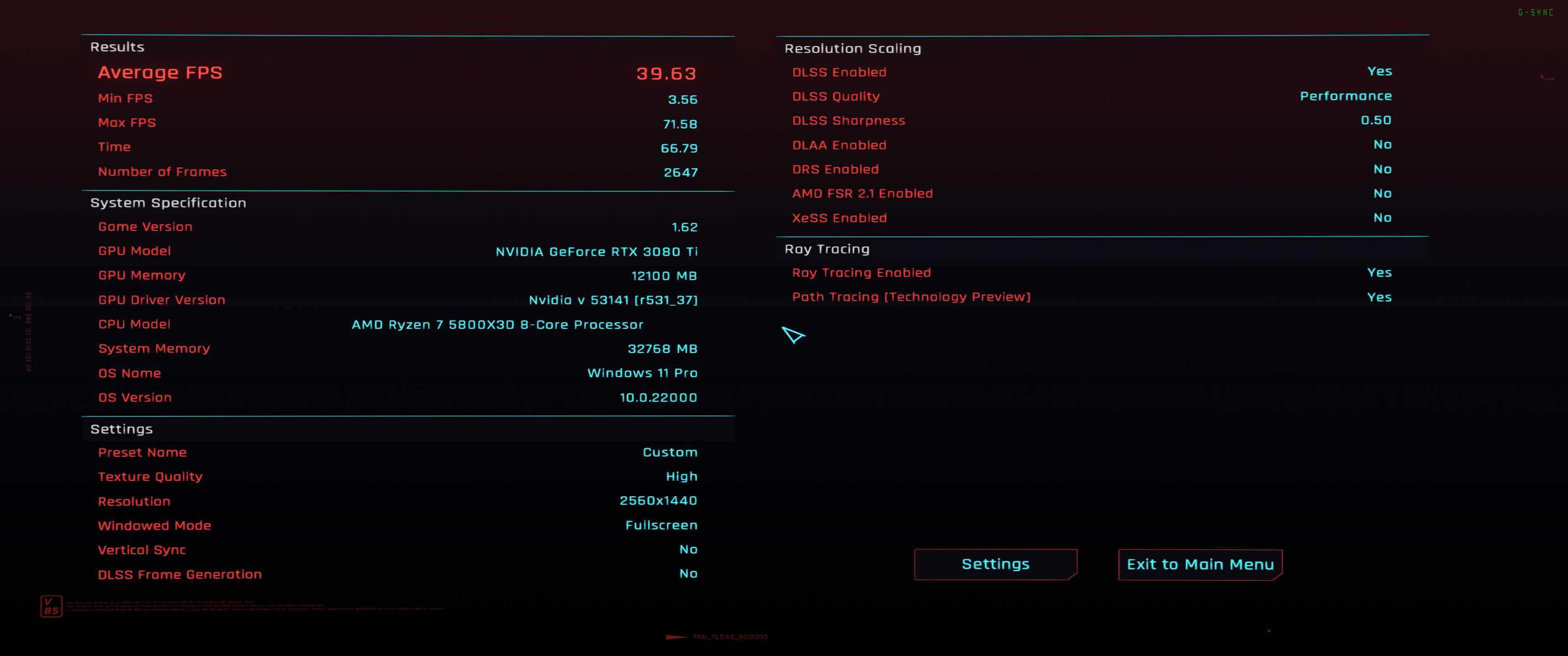 3.440 x 1.440, FRS 2/DLSS „Performance“: 87,03